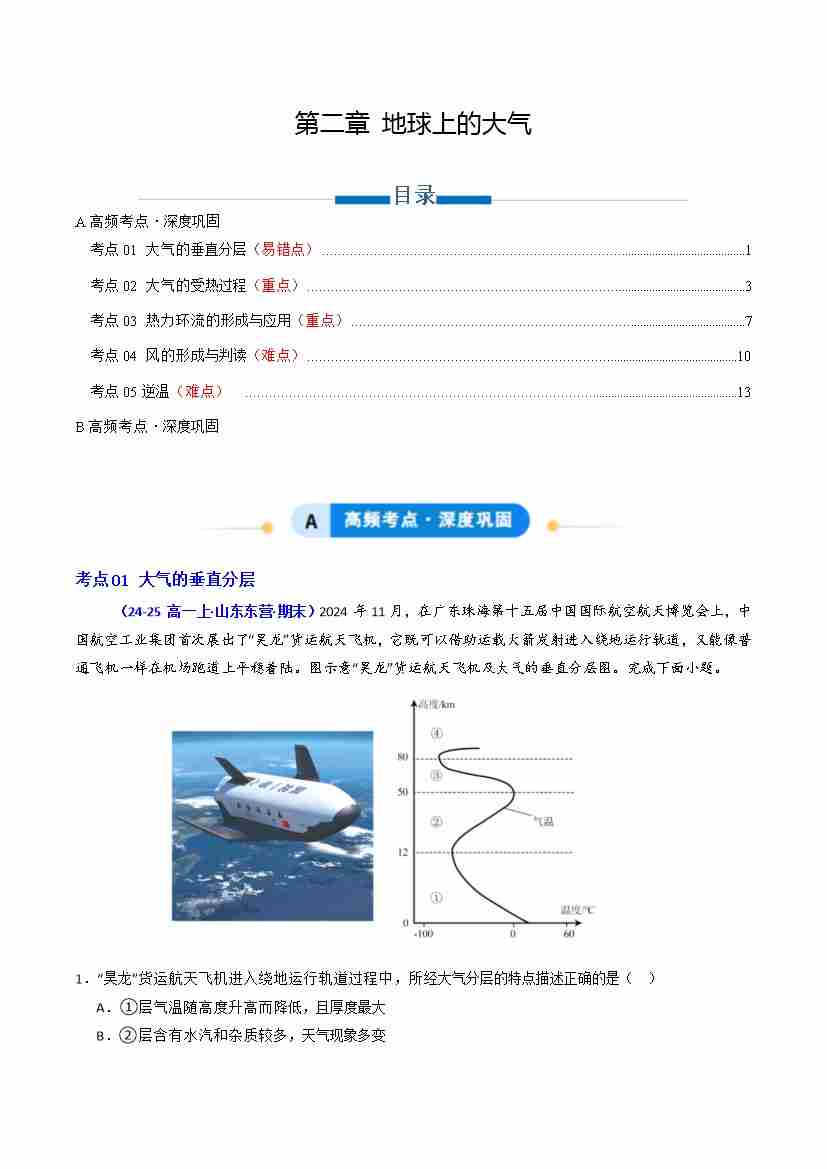 第二章 地球上的大气(专项训练)(学生版)