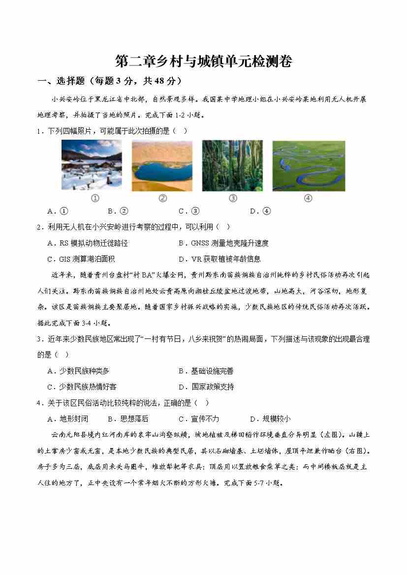 第二章乡村与城镇综合检测卷(原卷版)