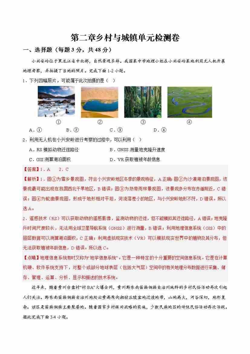 第二章乡村与城镇综合检测卷(解析版)