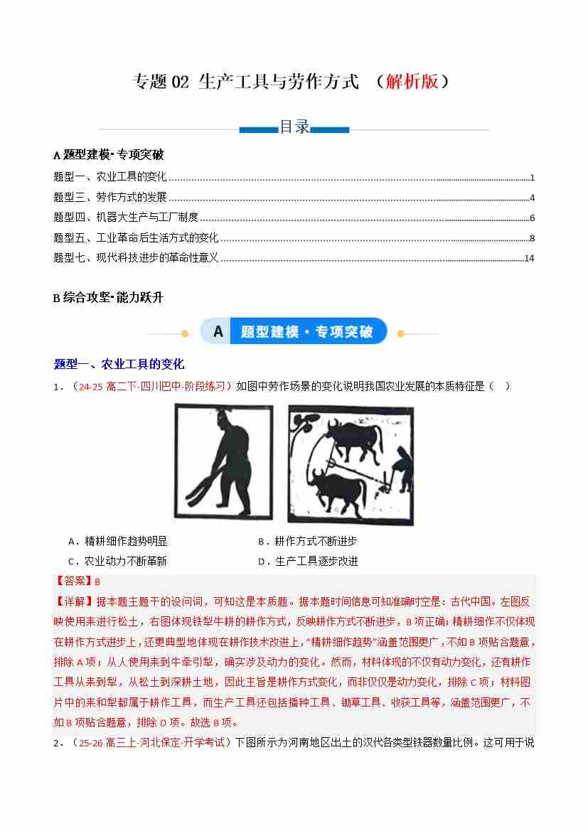 专题02 生产工具与劳作方式 (解析版)(专项训练)