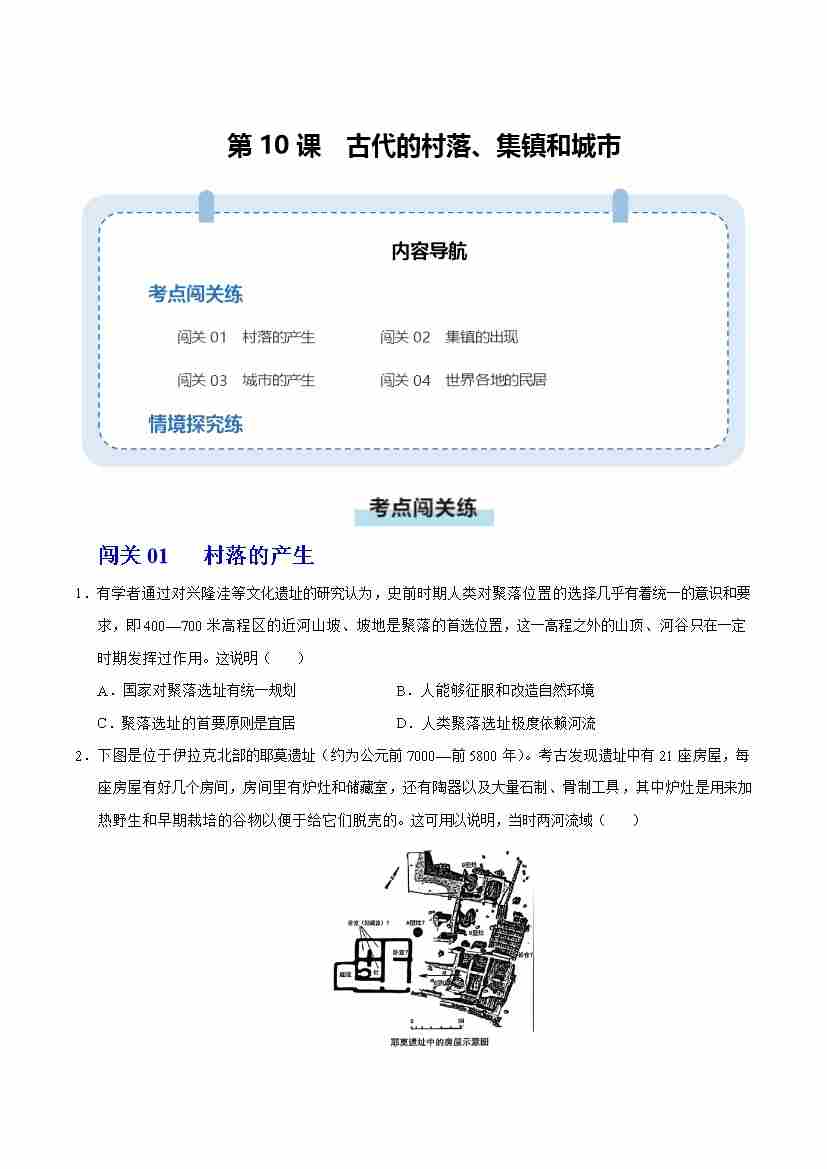 第10课 古代的村落、集镇和城市(情境化作业)(原卷版)