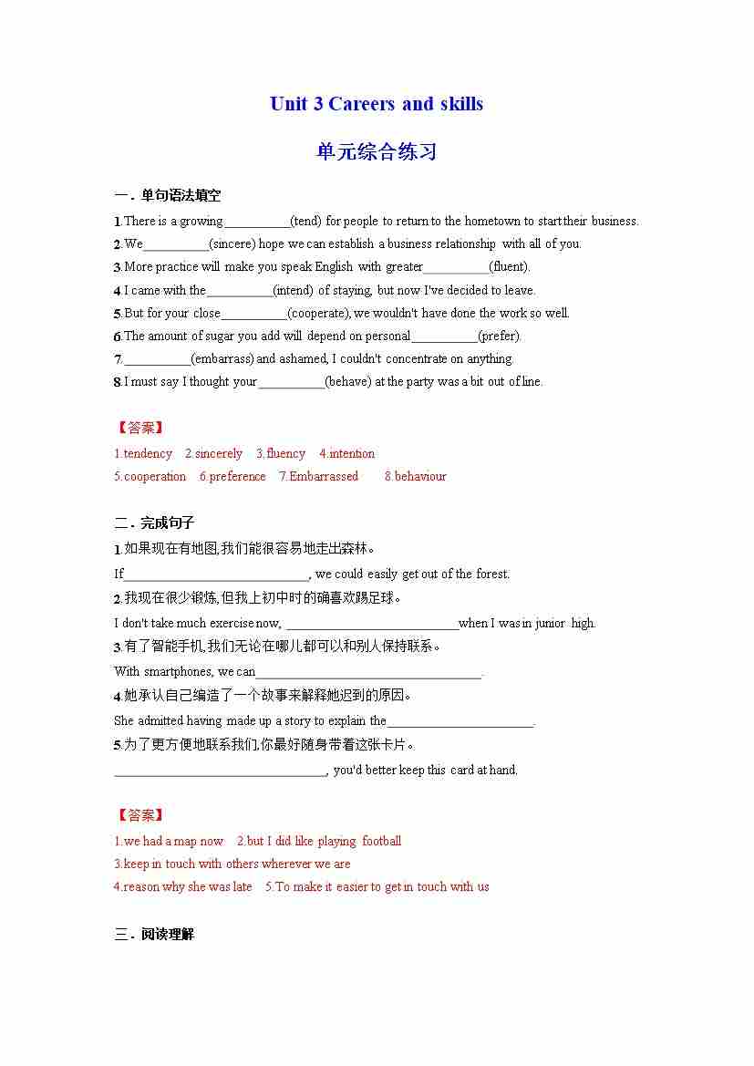 Unit 3 Careers and skills 单元综合练习 (解析版)(译林版2020选择性必修第四册)