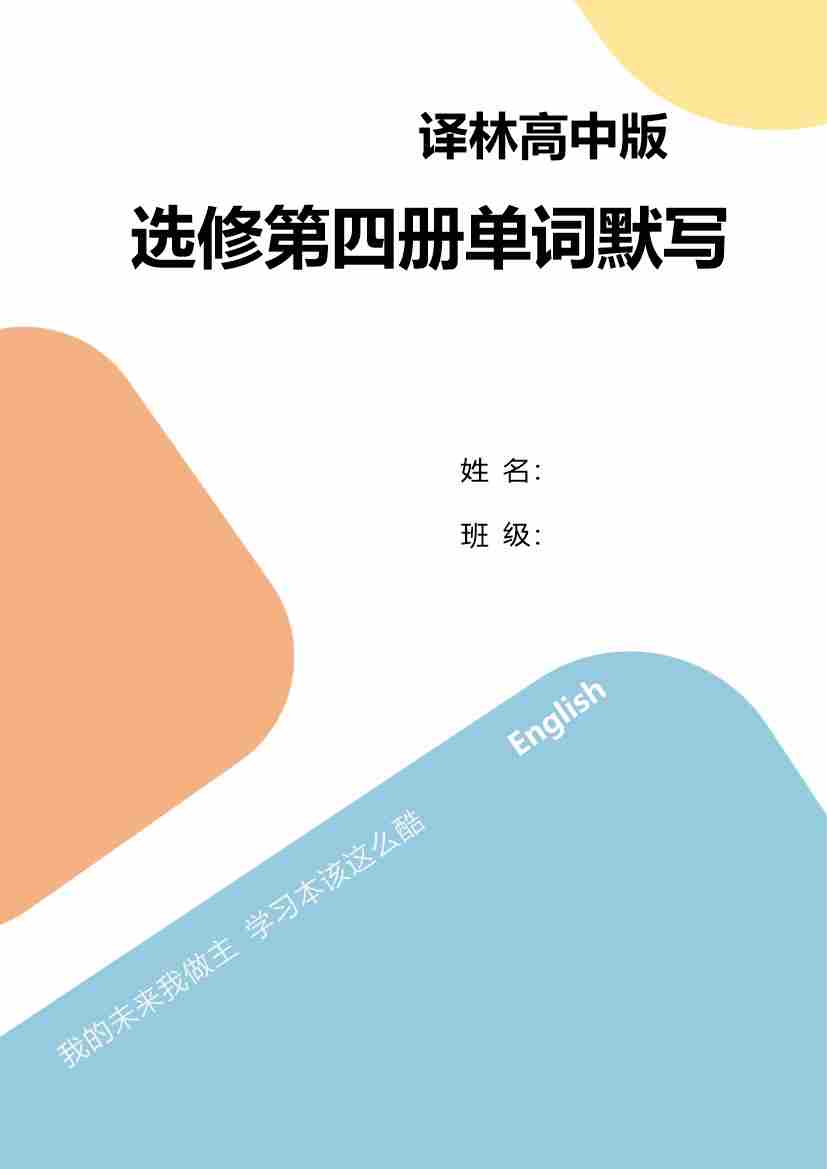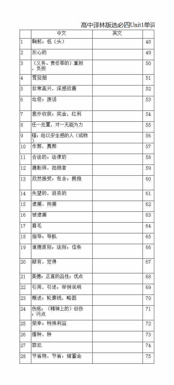 高中译林版选必四Unit4单词默写(汉译英乱序)