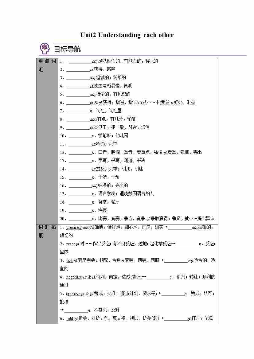 选择性必修第四册Unit2 Understanding each other(学生版)