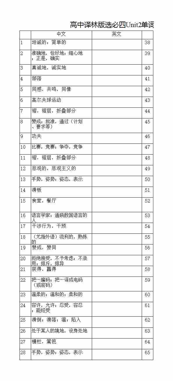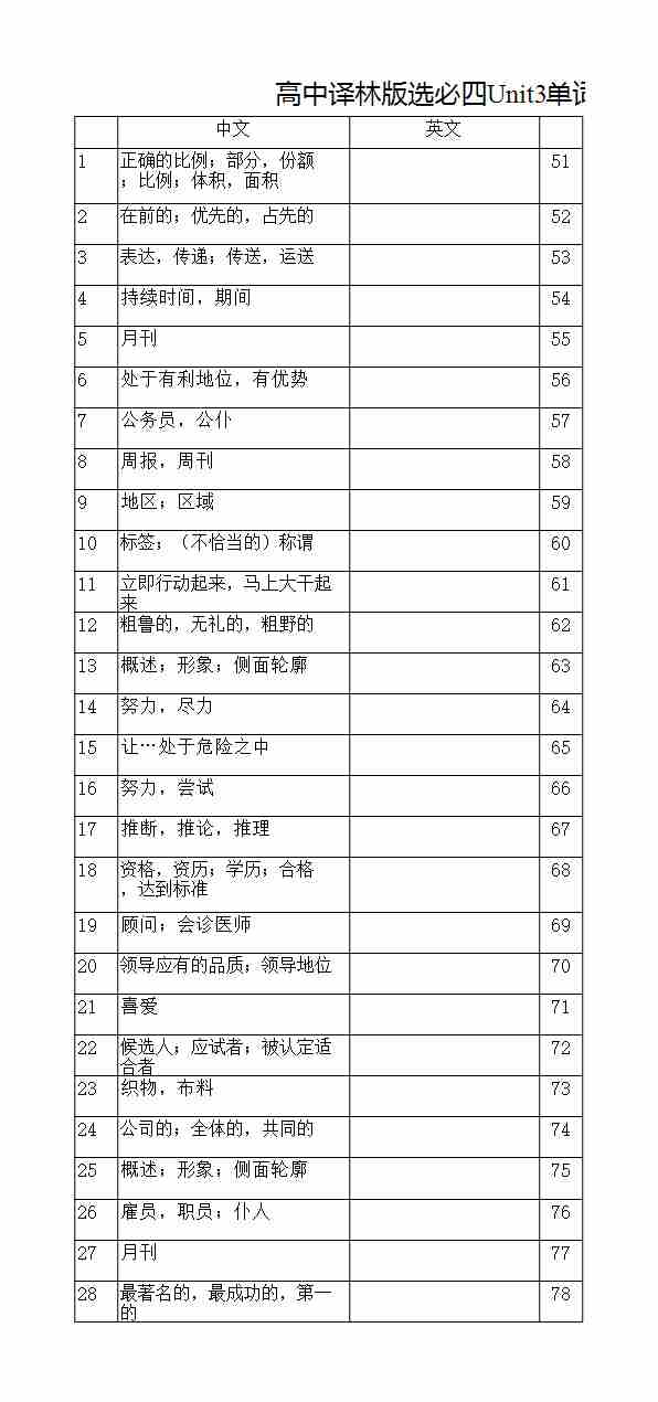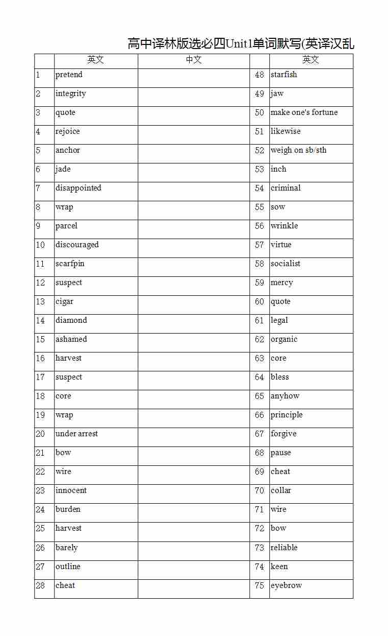 高中译林版选必四Unit2单词默写(汉译英乱序)