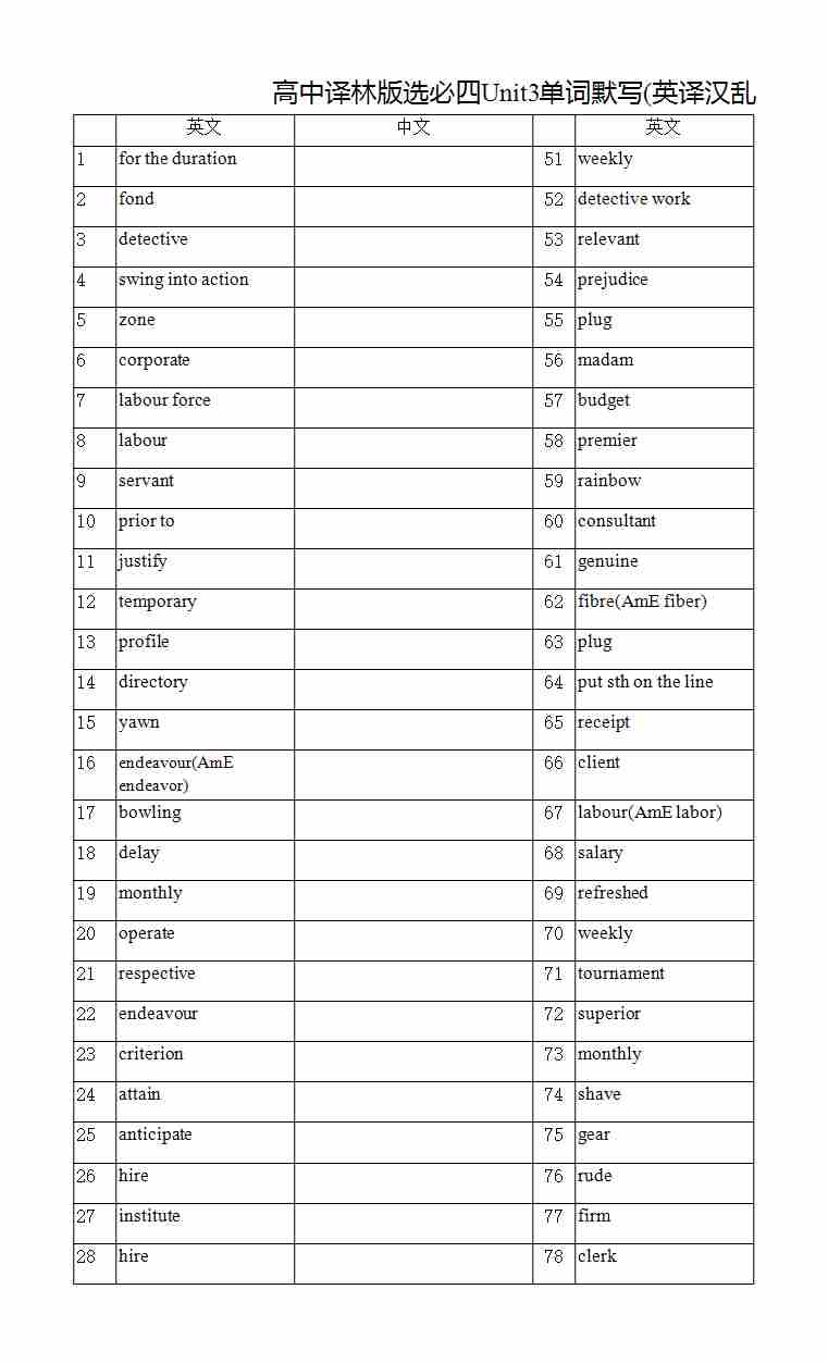 高中译林版选必四Unit3单词默写(汉译英乱序)