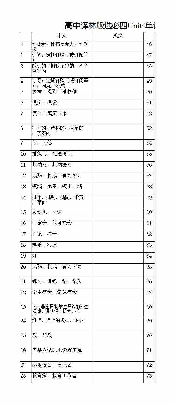 高中译林版选必四Unit4单词默写(英译汉乱序)