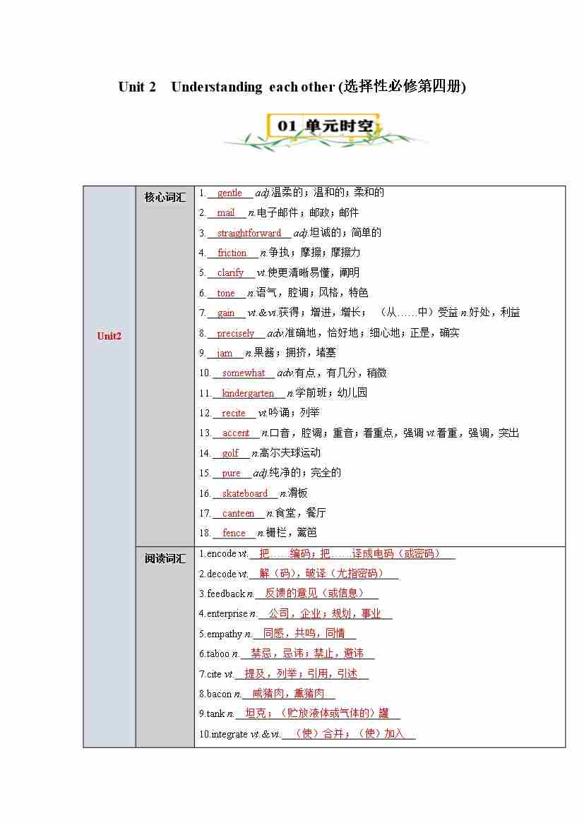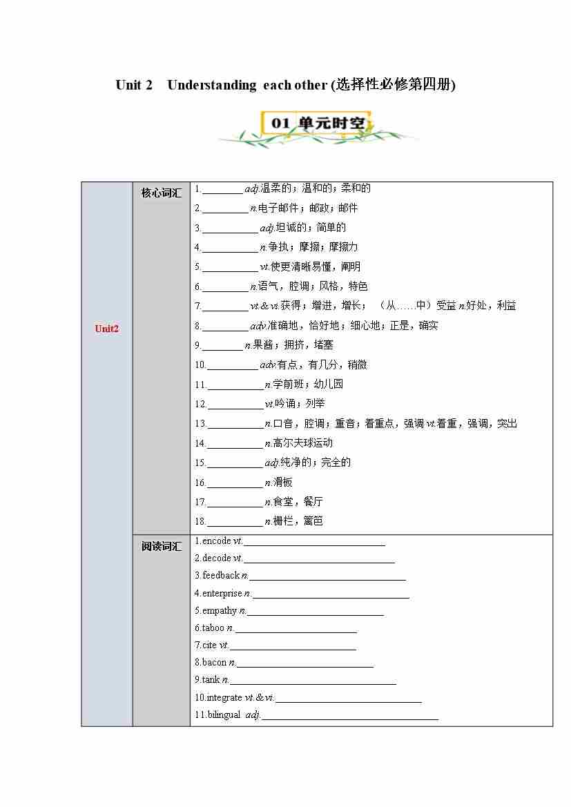 Unit2Understanding each other(知识清单)-(译林版2020选择性必修第四册)(学生版)