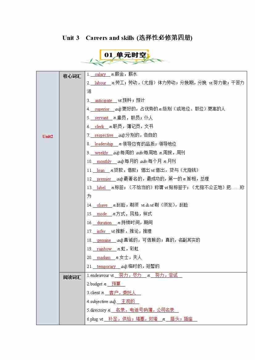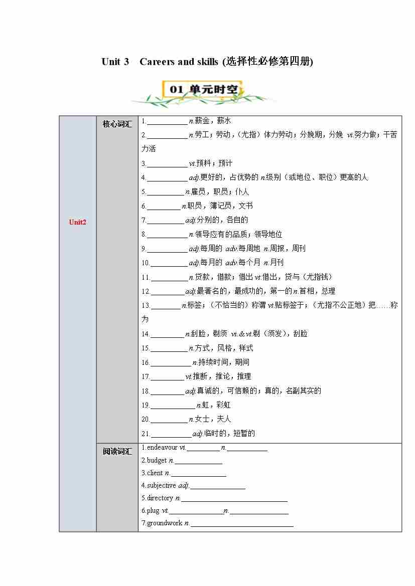 Unit3Careers and skills(知识清单)-(译林版2020选择性必修第四册)(学生版)