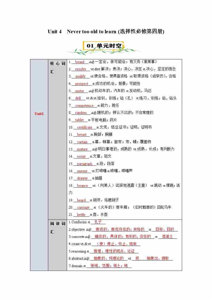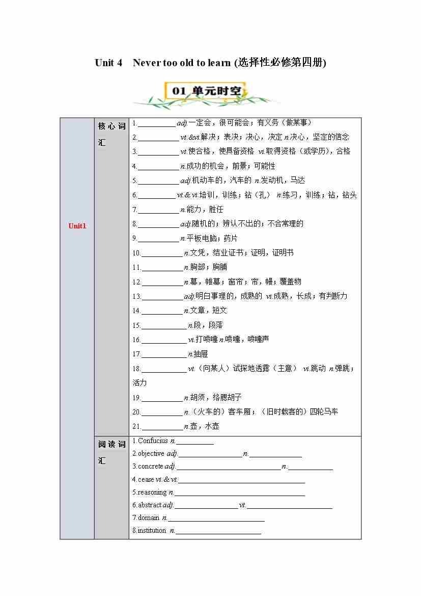 Unit4Never too old to learn(知识清单)-(译林版2020选择性必修第四册)(学生版)
