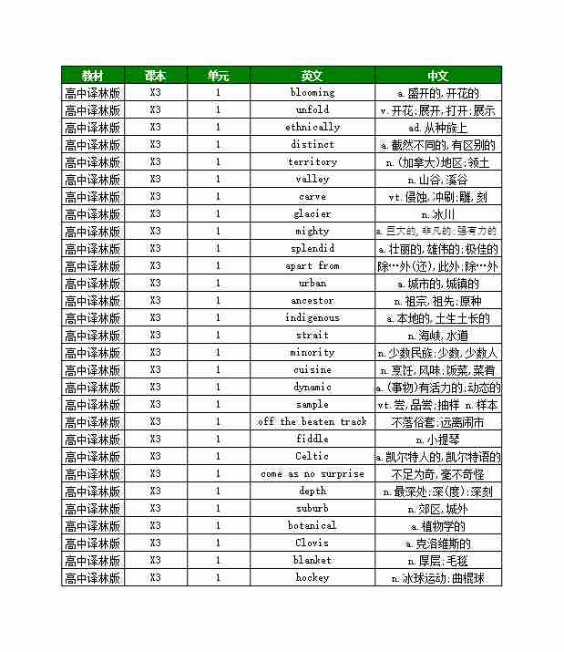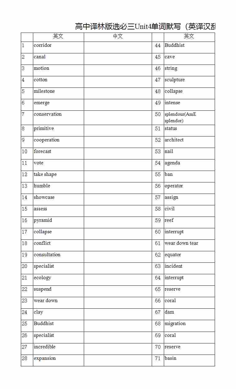 高中译林版选必三Unit4单词默写(英译汉乱序)