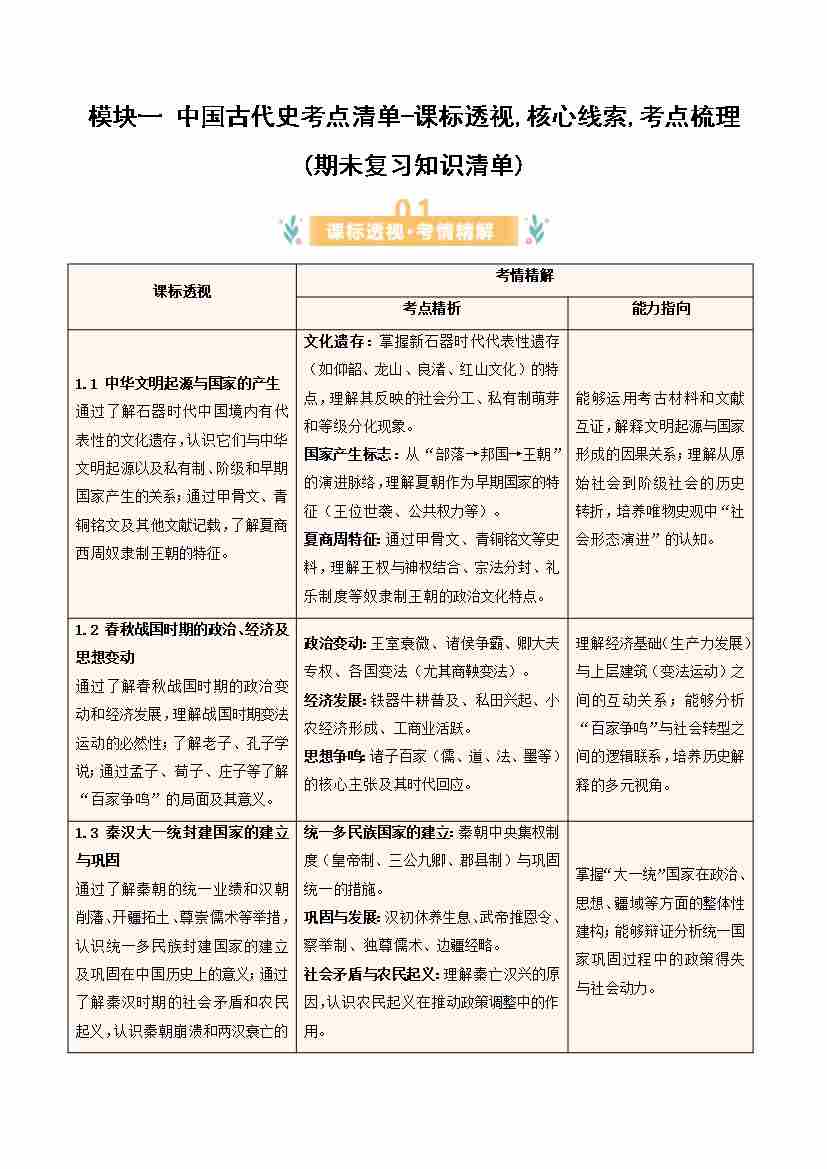 中国古代史考点清单-课标透视.核心线索.考点梳理(期末复习知识清单)