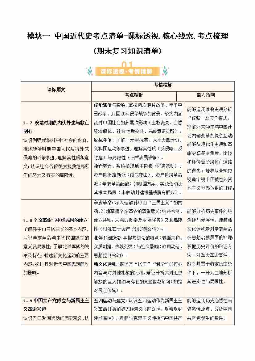 中国近代史考点清单-课标透视.核心线索.考点梳理(期末复习知识清单)