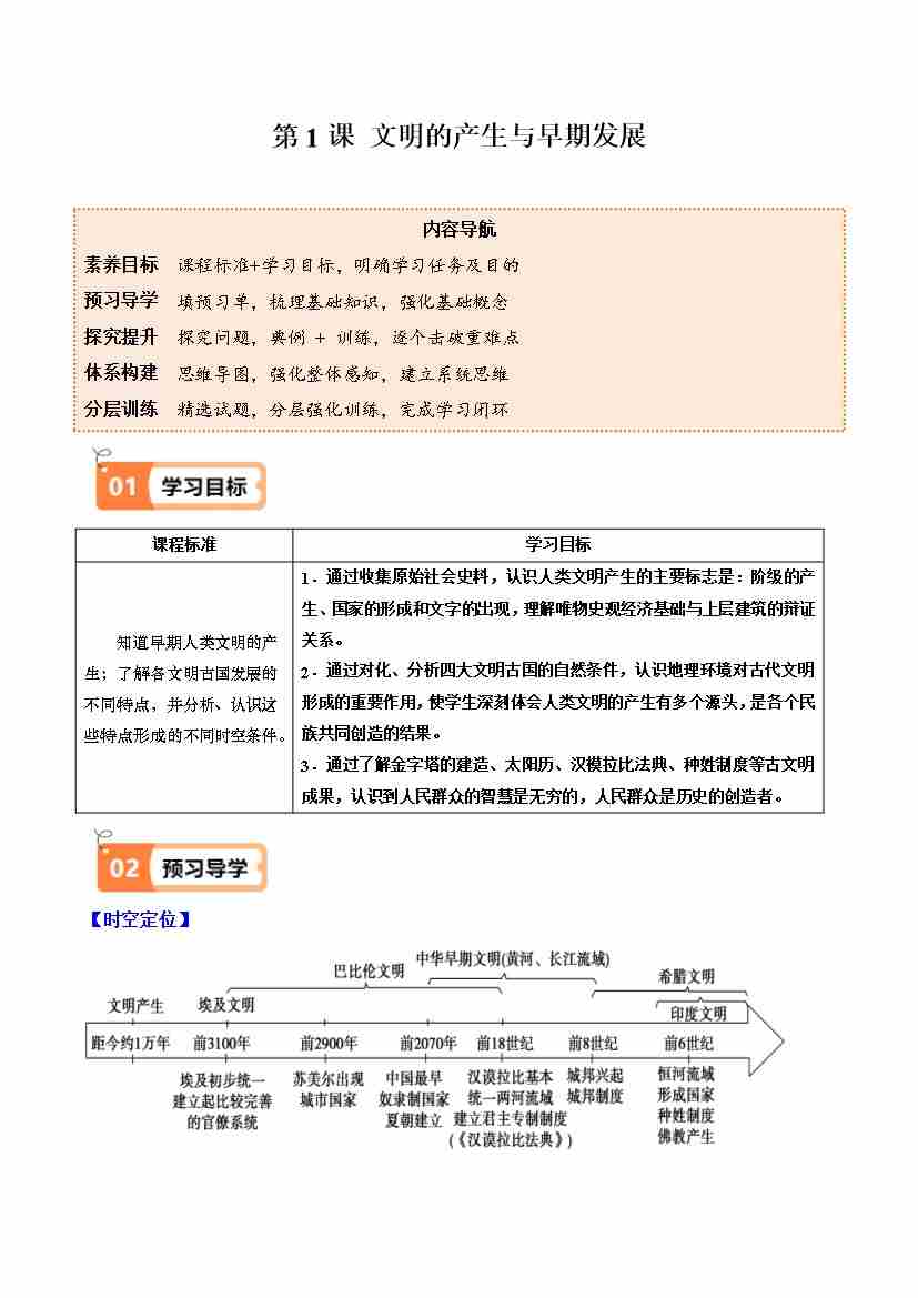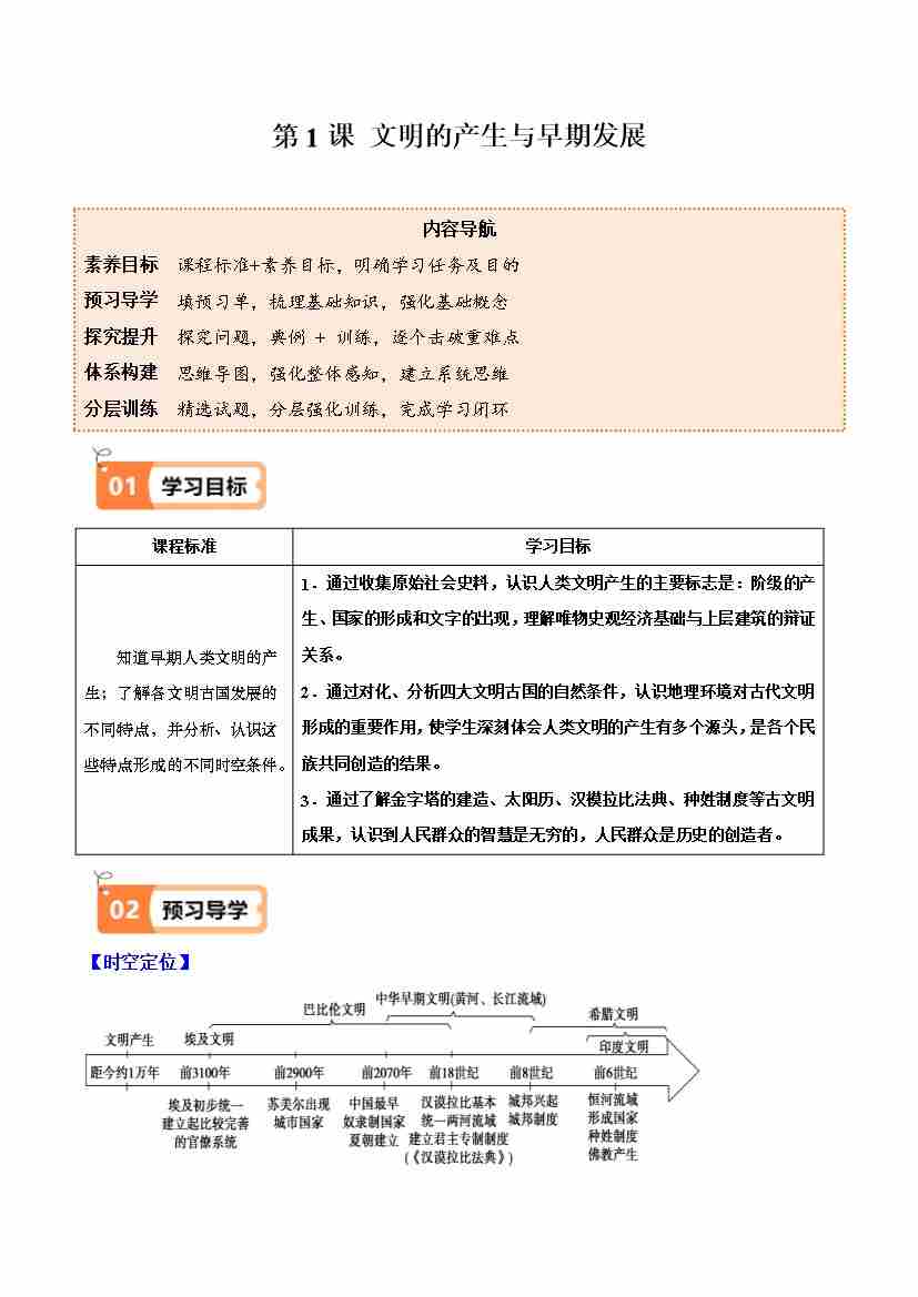 第1课 文明的产生与早期发展 (学生版)