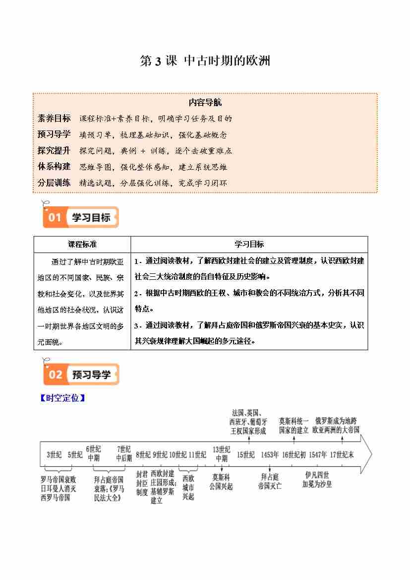 第3课 中古时期的欧洲 (教师版)