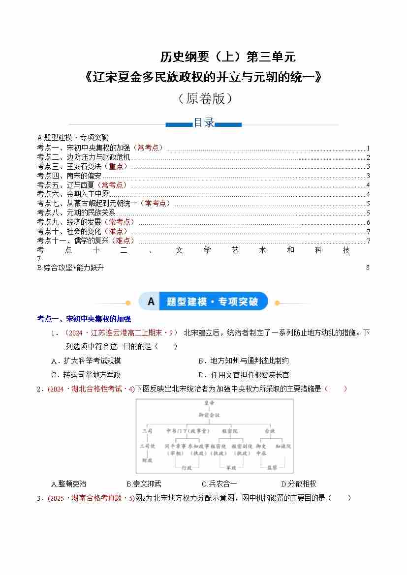 第三单元 辽宋夏金多民族政权的并立与元朝的统一(专项训练)(学生版)