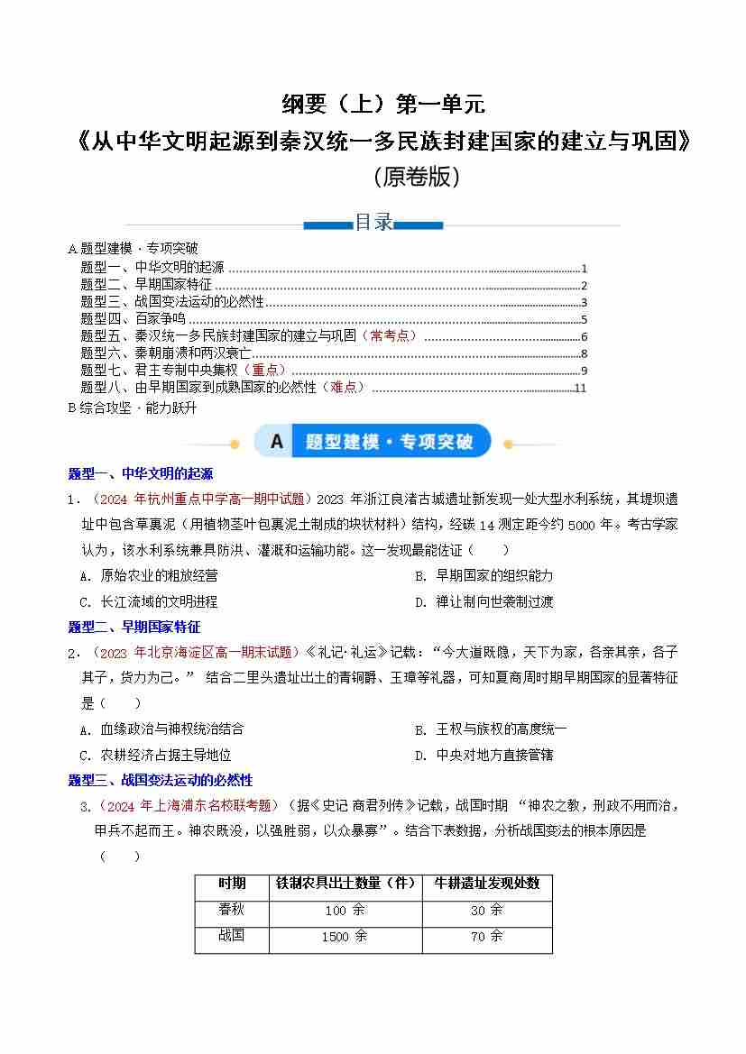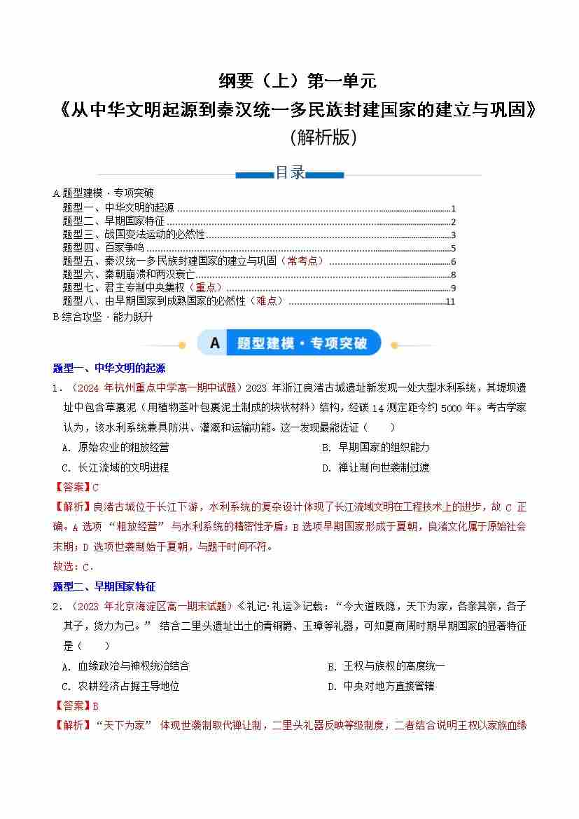 纲要上历史第一单元 (专项训练)(教师版)