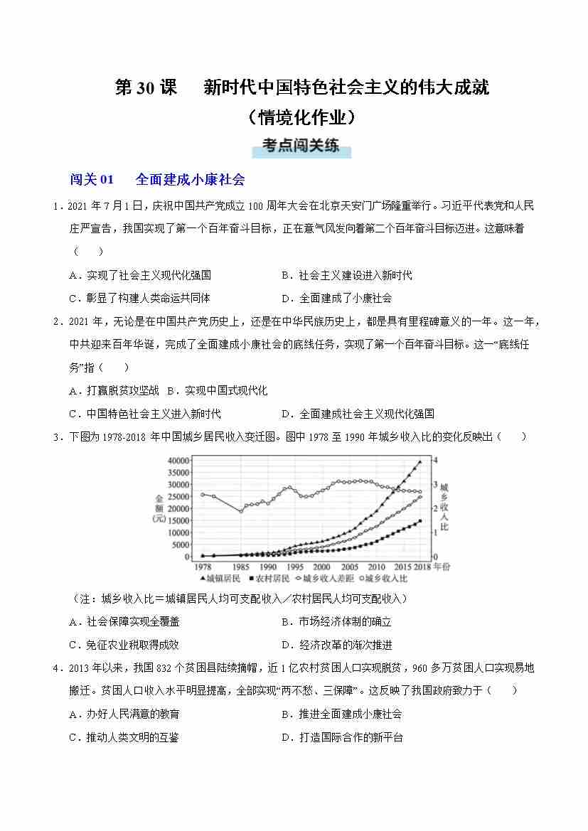 第30课 新时代中国特色社会主义的伟大成就(情境化作业)(原卷版)