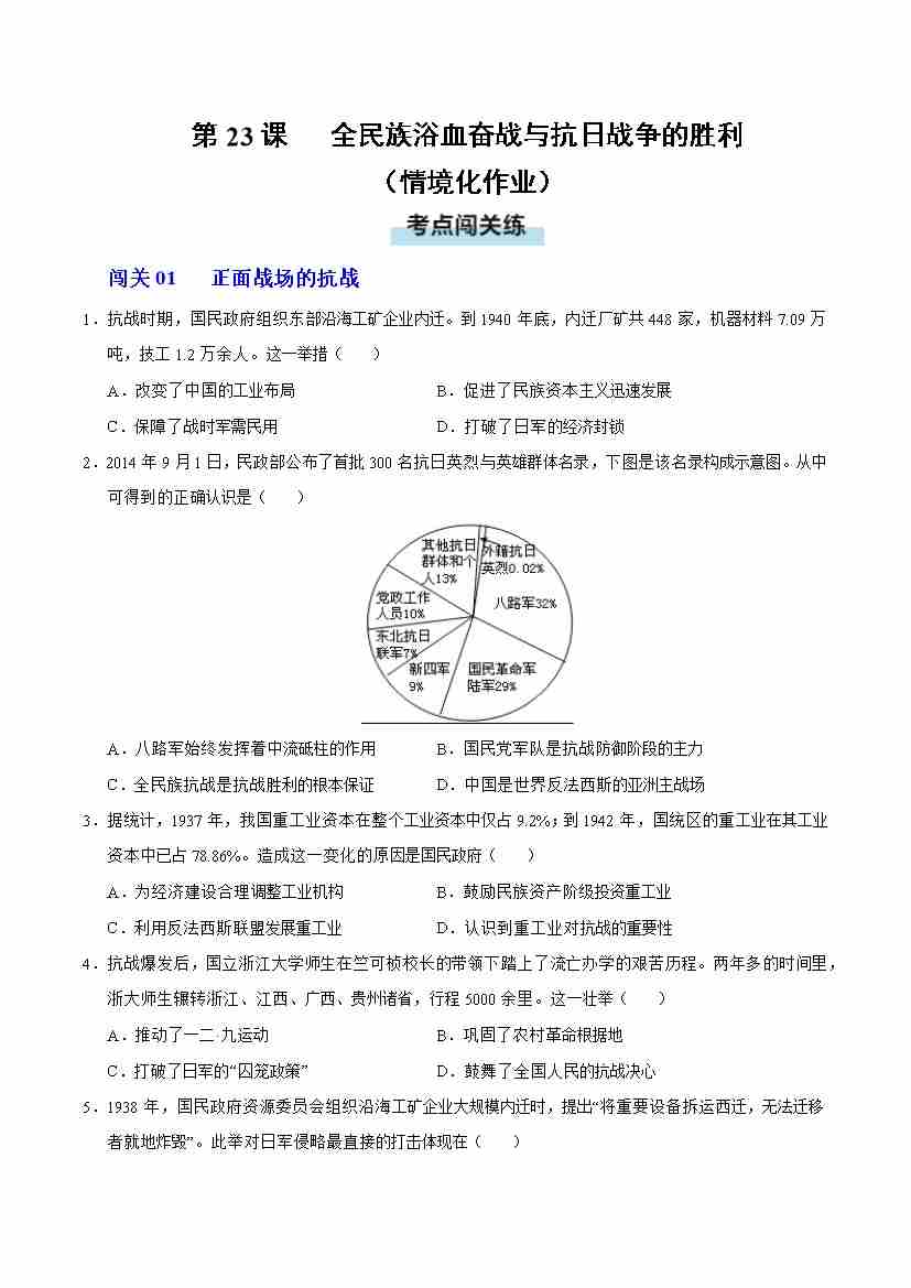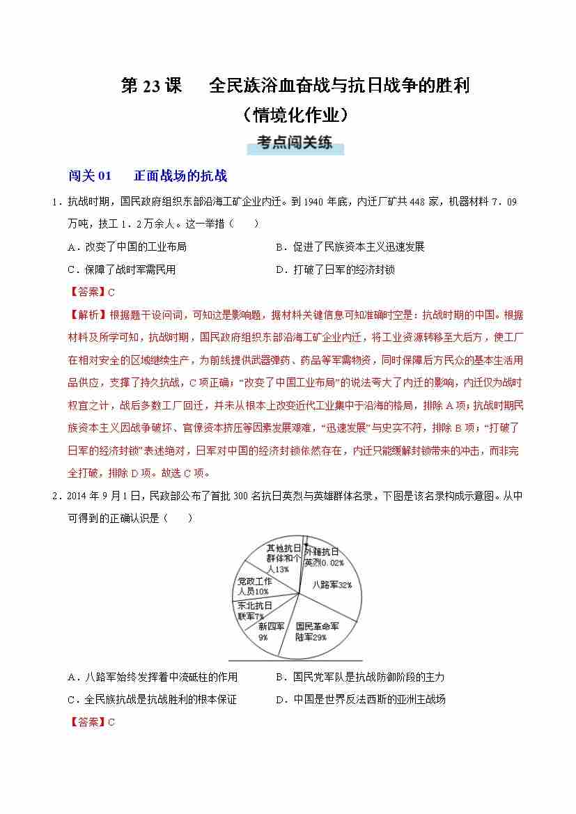 第23课 全民族浴血奋战与抗日战争的胜利(情境化作业)(解析版)