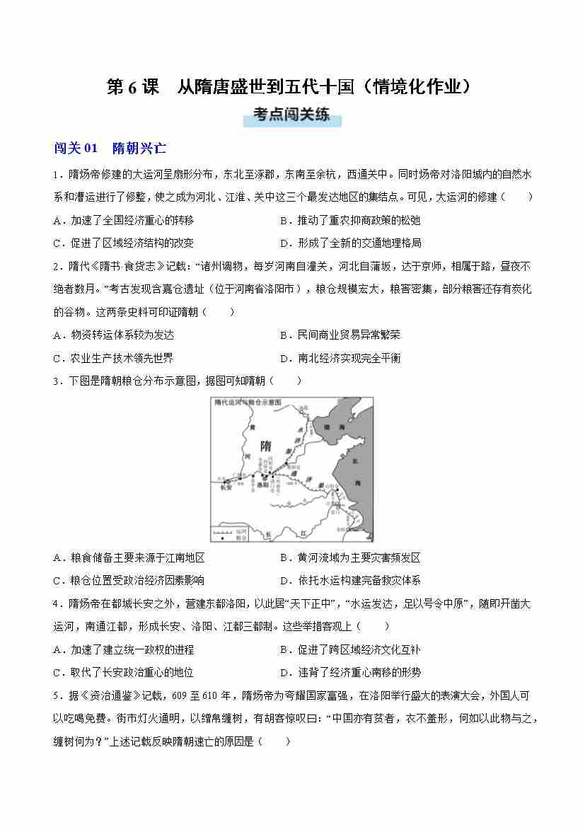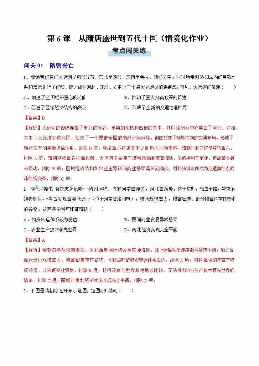 第6课 从隋唐盛世到五代十国(情境化作业)(解析版)