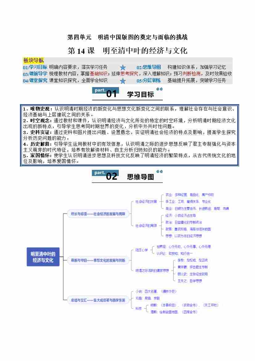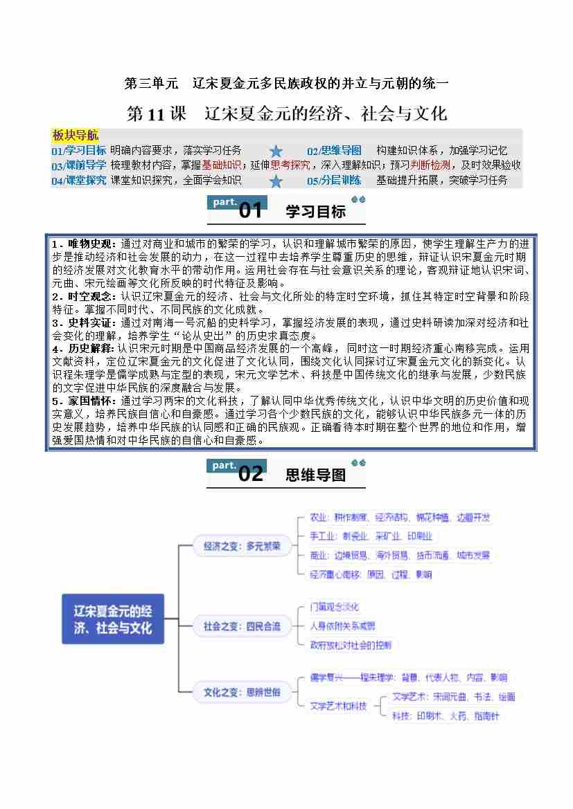 第11课 辽宋夏金元的经济、社会与文化(学生版)