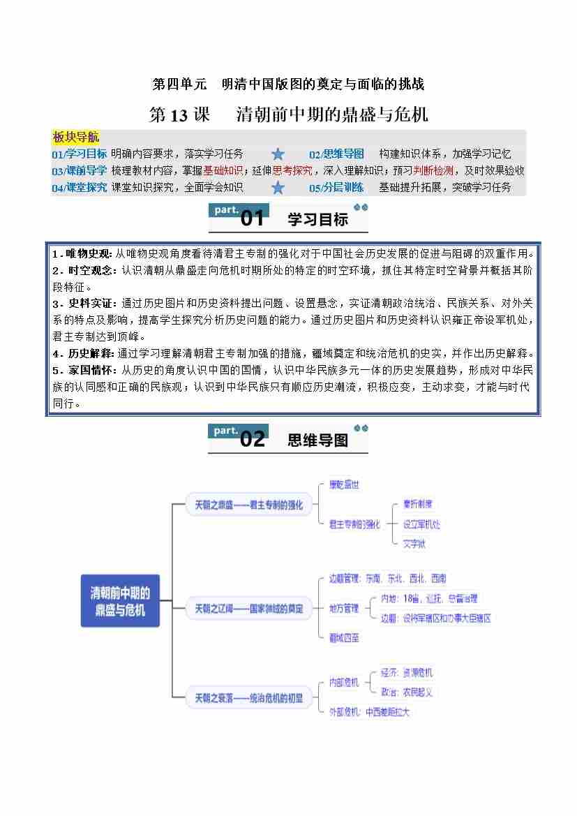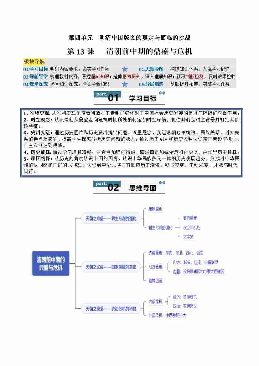第13课 清朝前中期的鼎盛与危机(学生版)