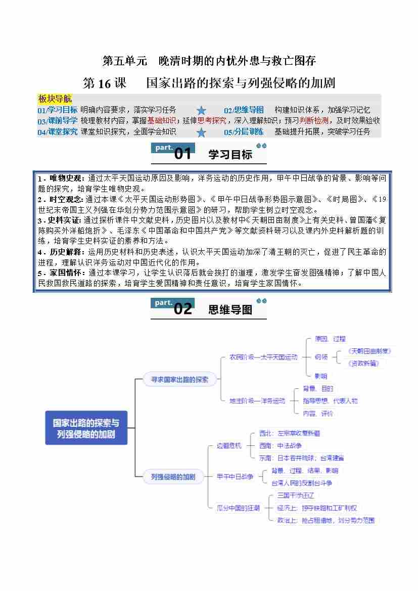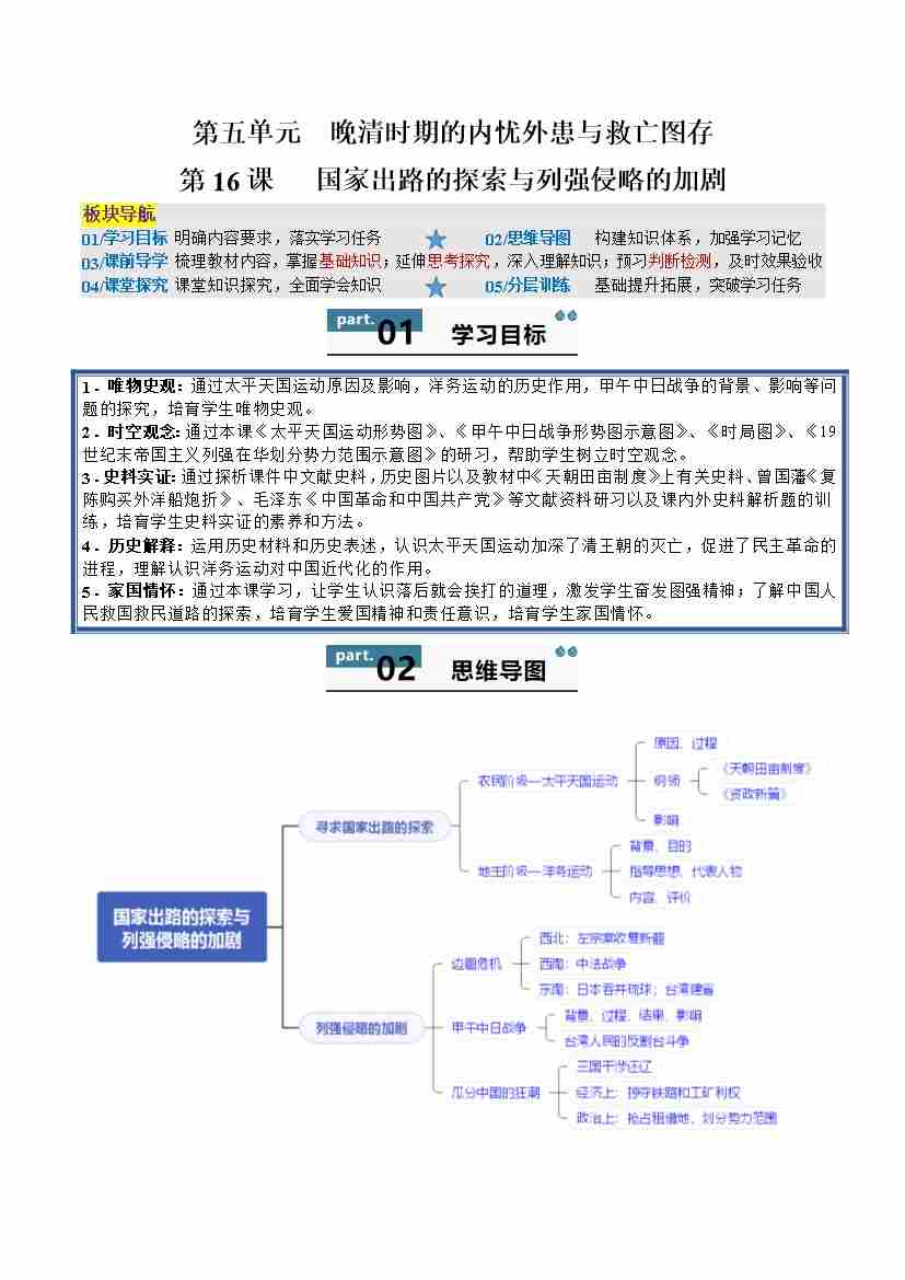 第16课 国家出路的探索与列强侵略的加剧(学生版)