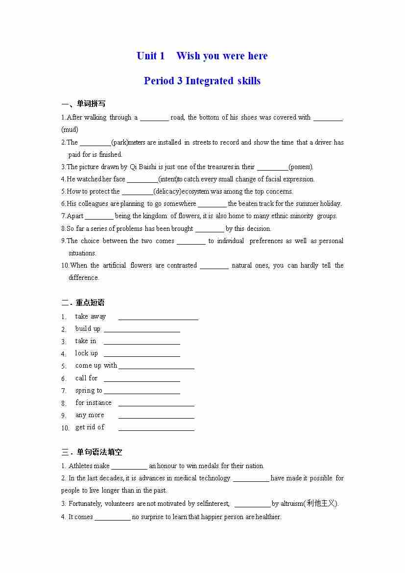 Unit 1 Wish you were here Period 3 Integrated skills(分层练习)(解析版)
