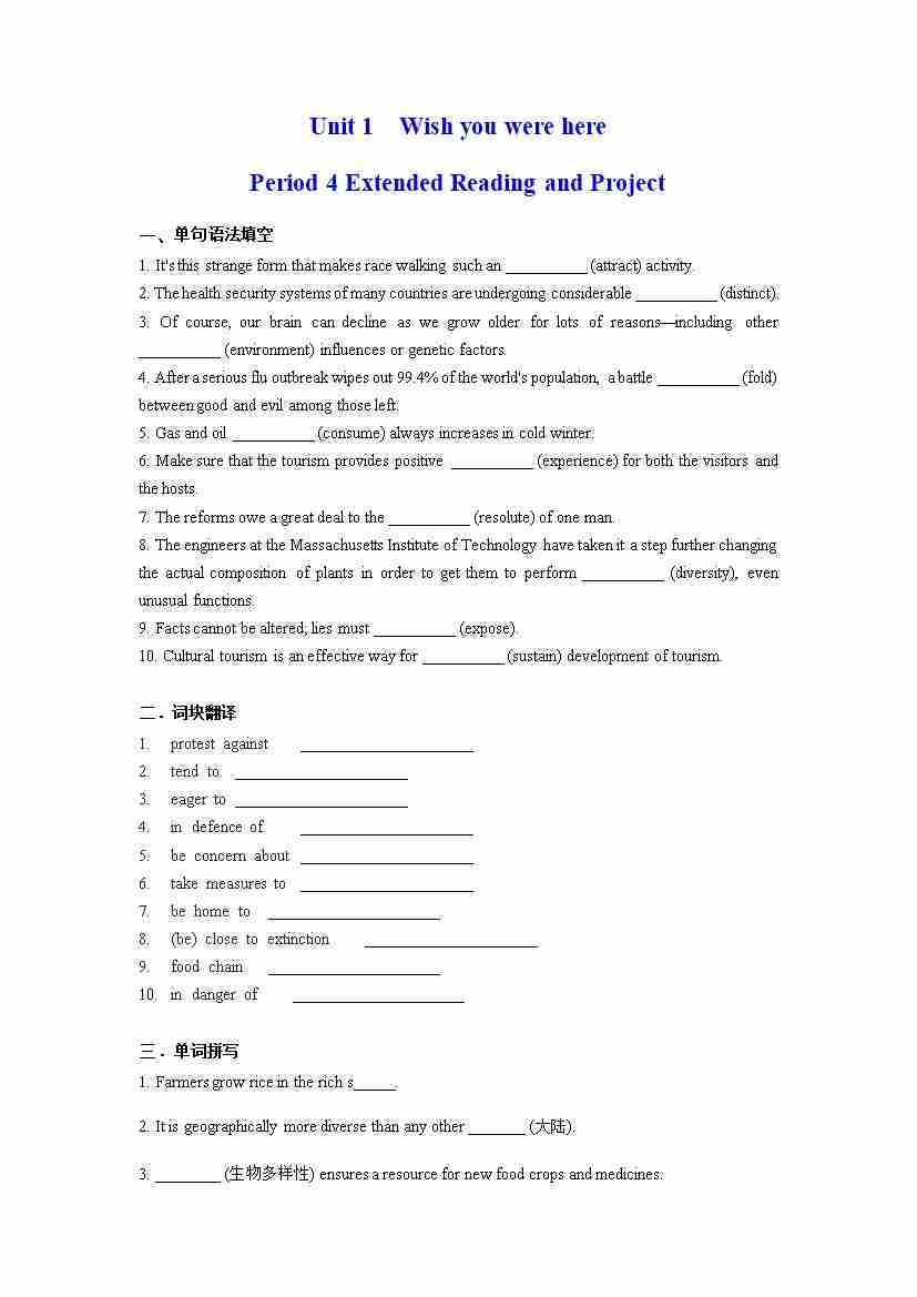 Unit 1 Wish you were here Period 4 Extended Reading(分层练习)(原卷版)