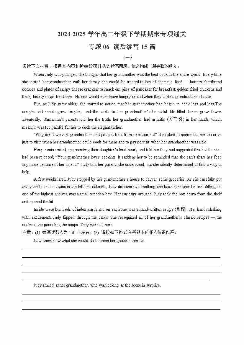 专题06 读后续写(期末必刷15篇)(学生版)