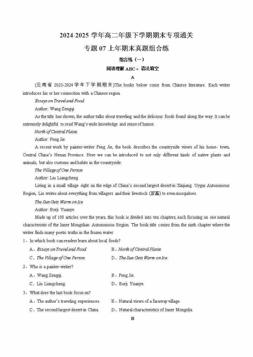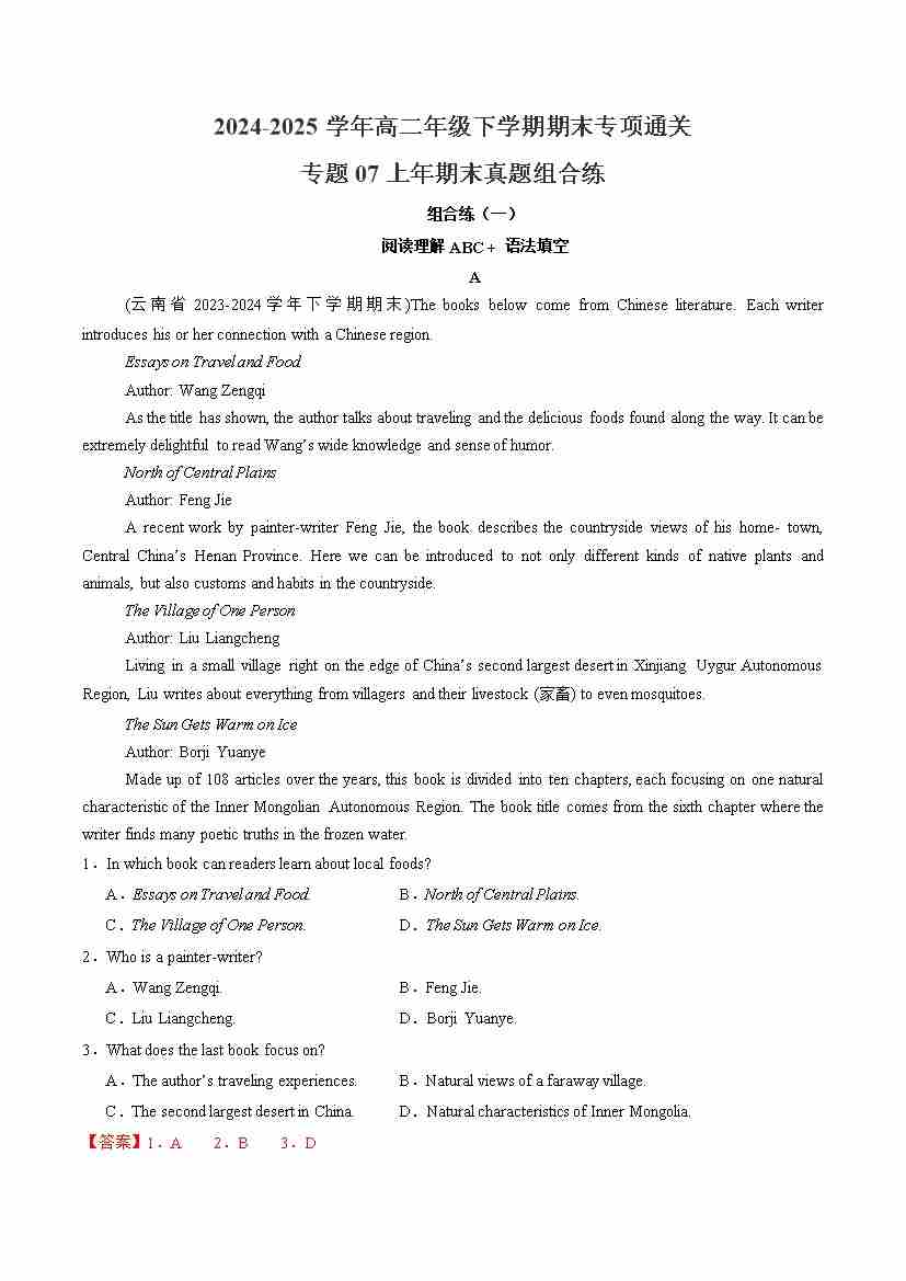 专题07 上年期末真题组合练(学生版)
