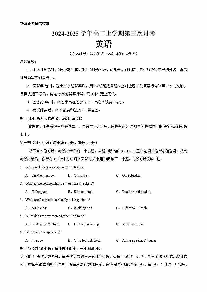 月考试卷