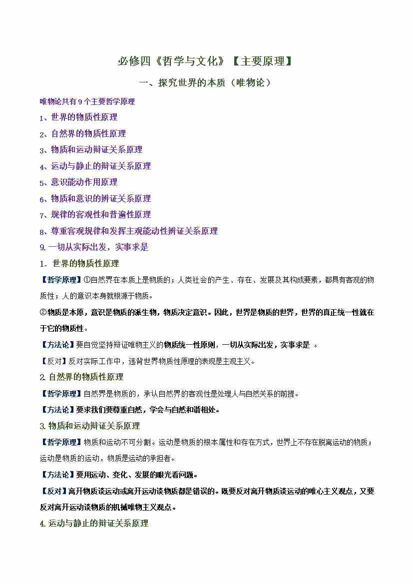必修四《哲学与文化》(哲学原理汇总)-(统编版必修4+选必1)