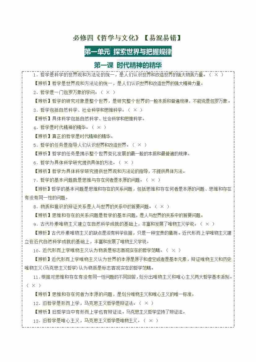 必修四《哲学与文化》(易混易错)-(统编版必修4+选必1)