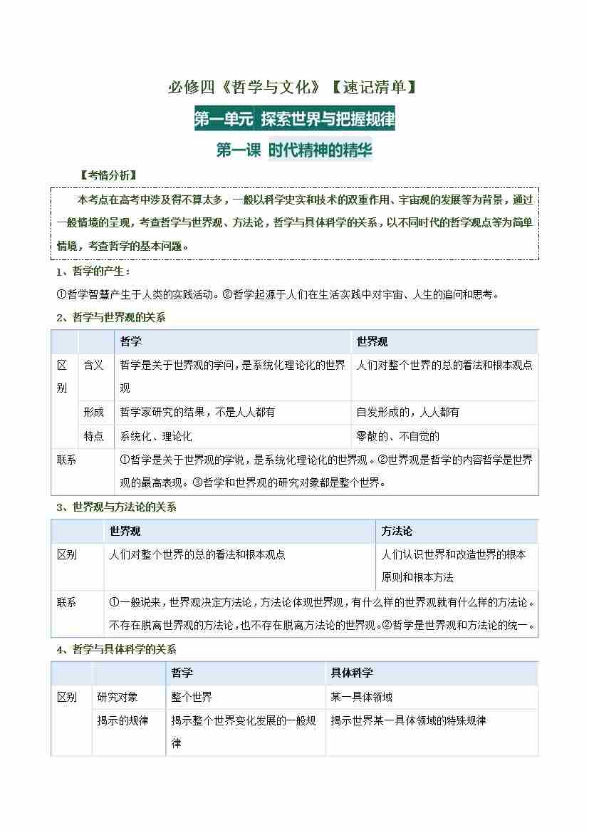 必修四《哲学与文化》(知识清单)-(统编版必修4+选必1)