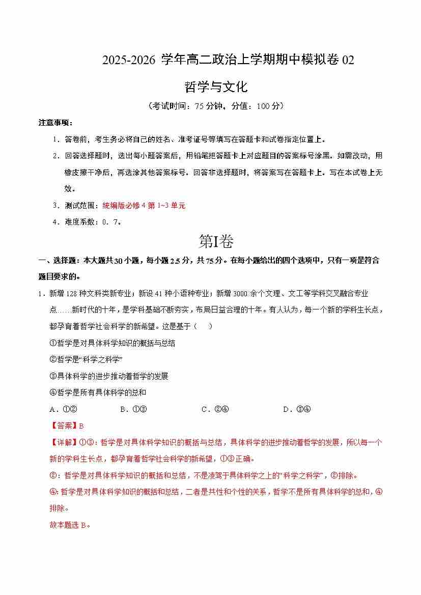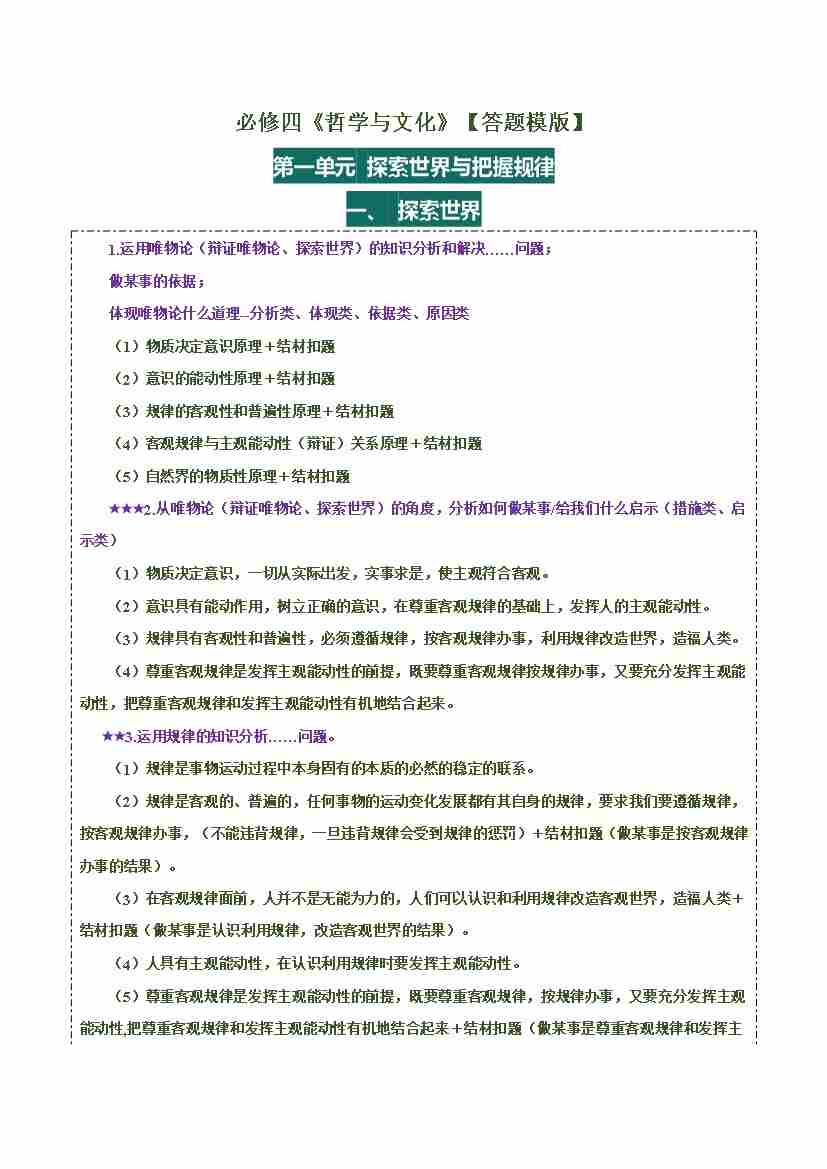 必修四《哲学与文化》(答题模版)-(统编版必修4+选必1)