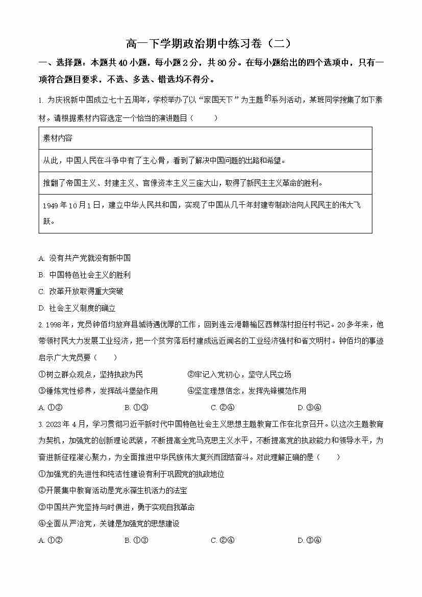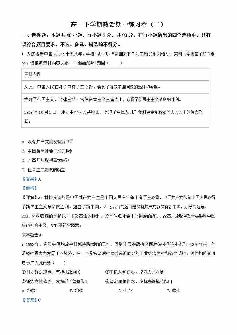 第二单元 世界多极化(考题猜想:真题闯关12题+模拟必刷20题)(教师版)