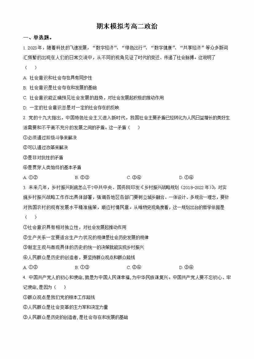 第二单元 认识社会与价值选择(考题猜想:真题闯关29题+模拟必刷20题)(教师版)