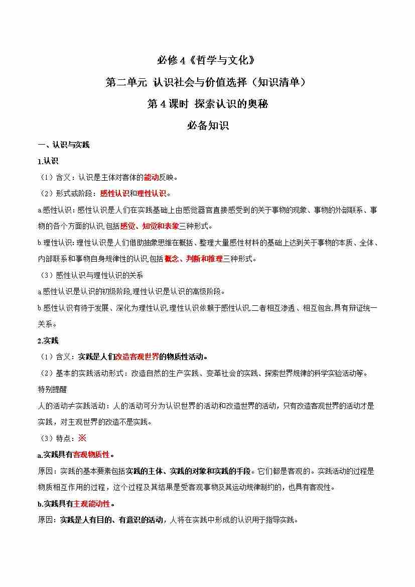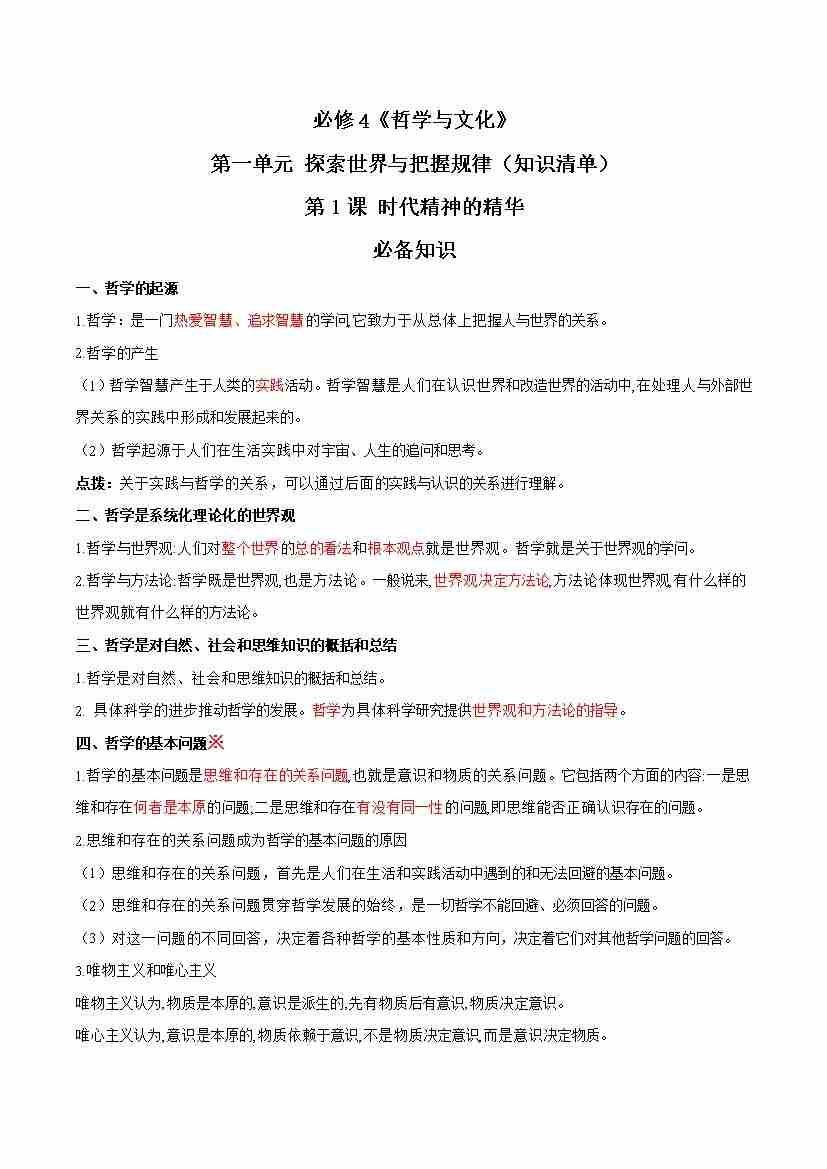 第一单元 探索世界与把握规律(知识清单)-(统编版必修4)1