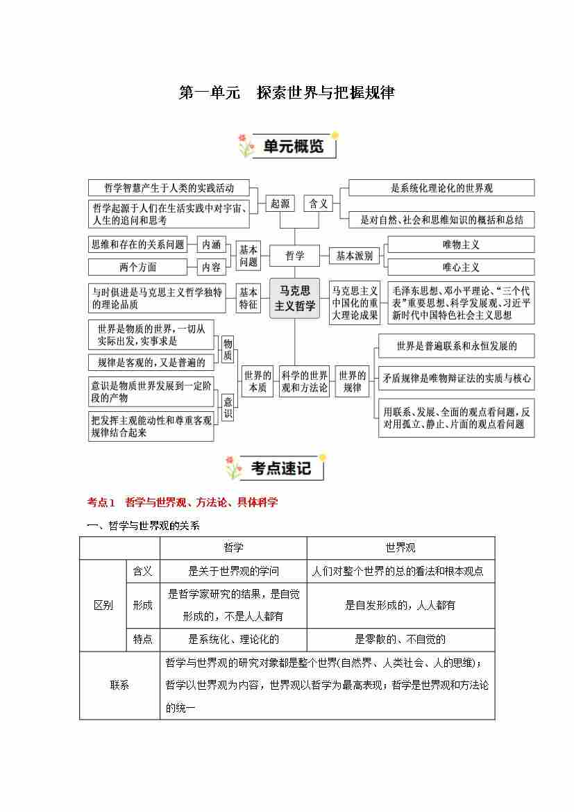第一单元 探索世界与把握规律(知识清单)(统编版必修4)