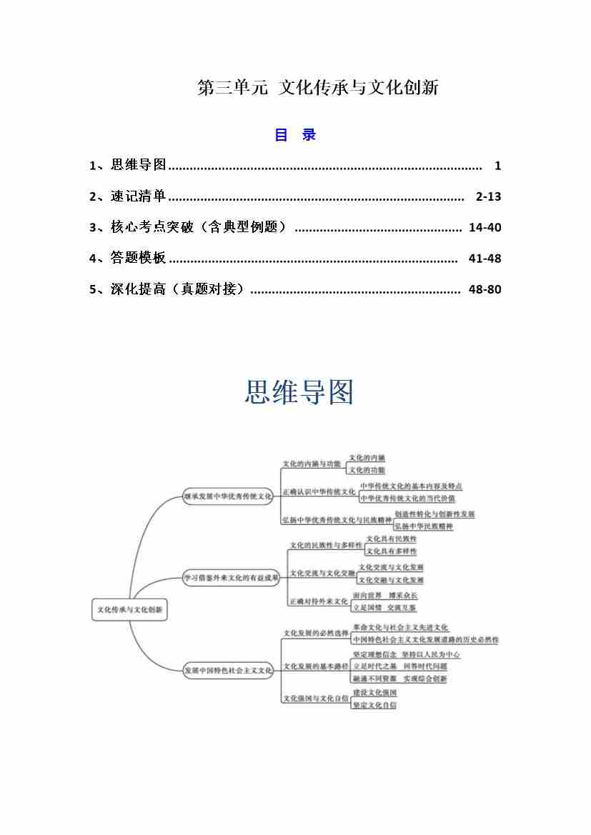 第三单元 文化传承与文化创新(知识清单)(挖空版)
