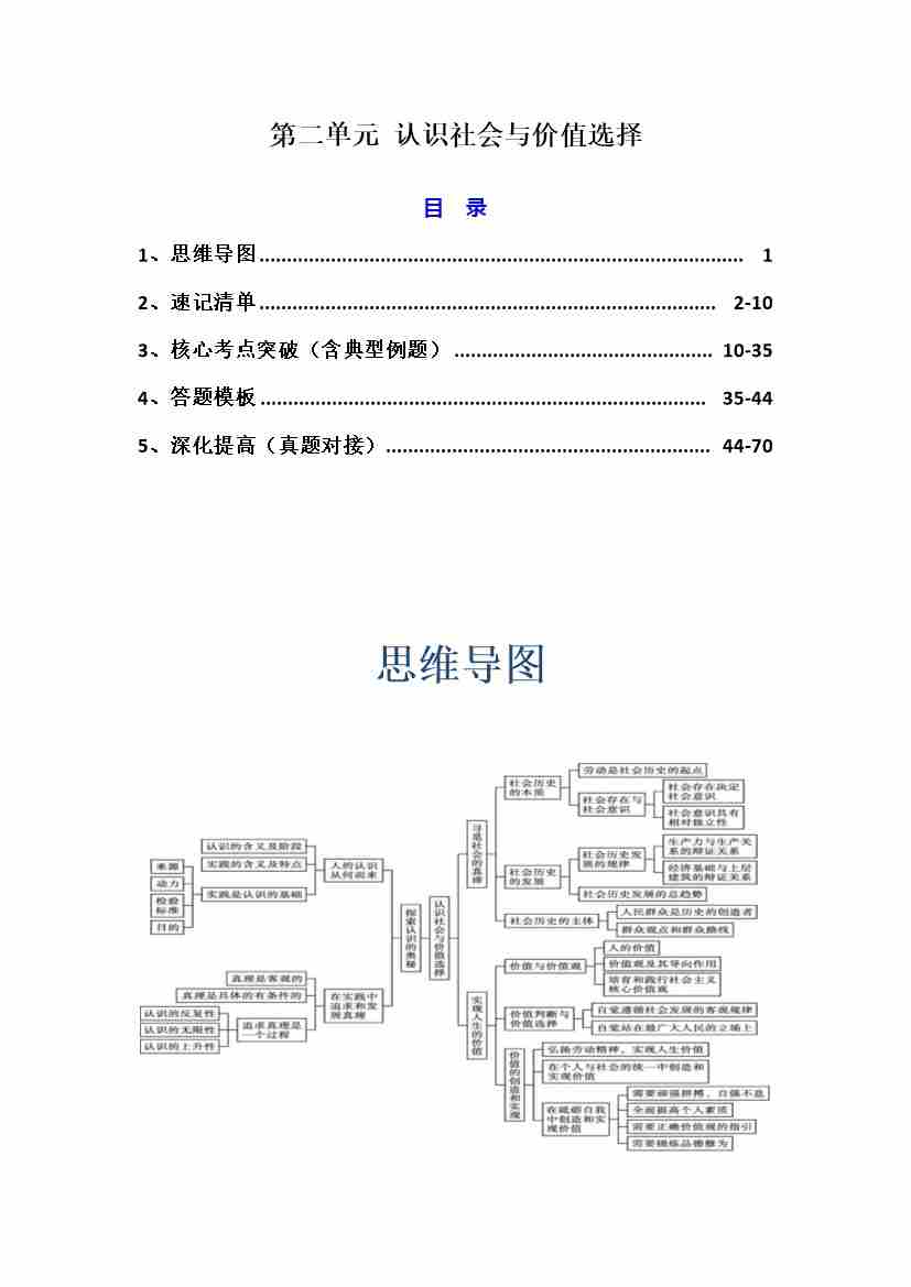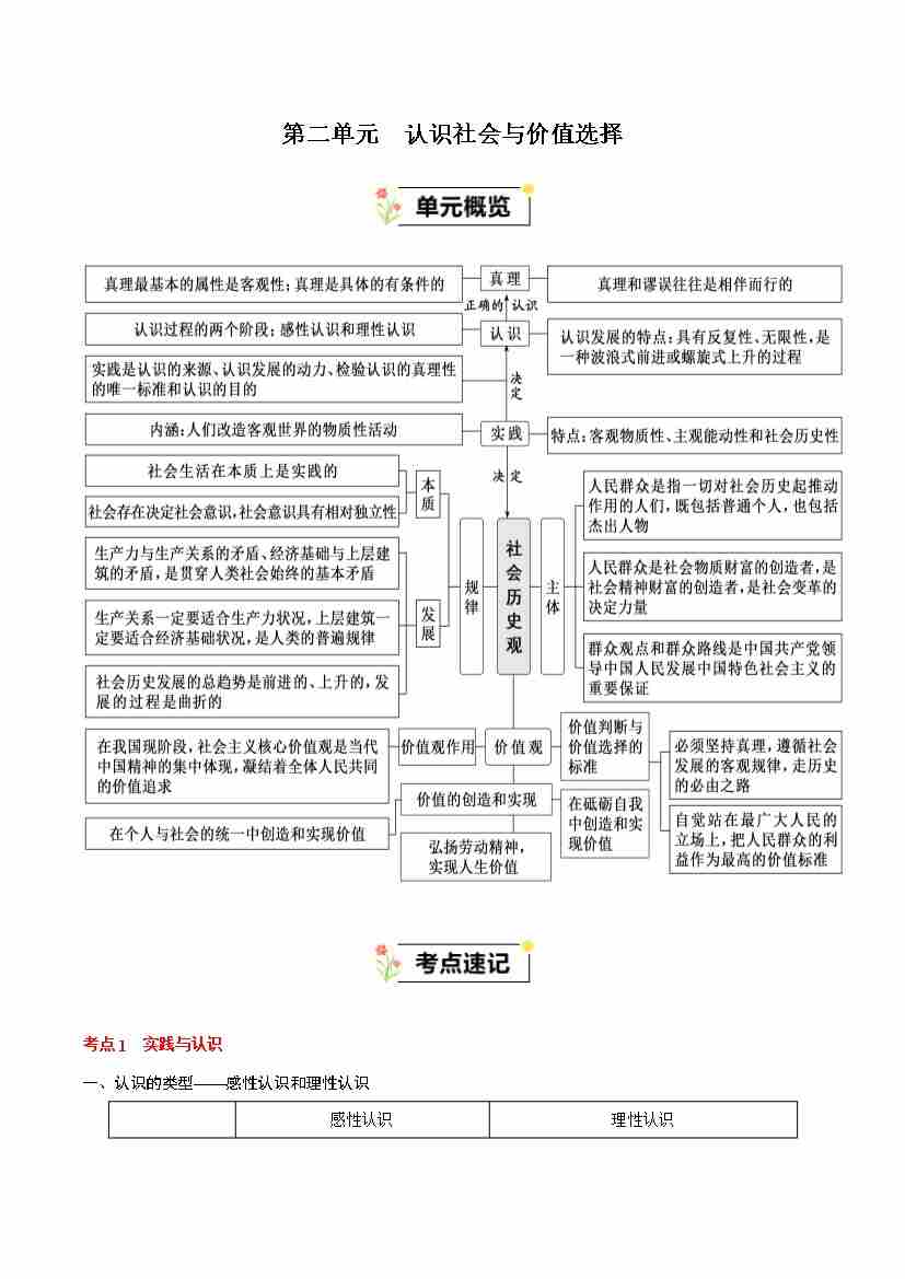 第二单元认识社会与价值选择(知识清单)-(统编版必修4)