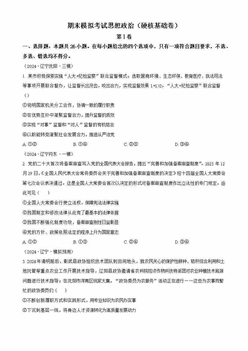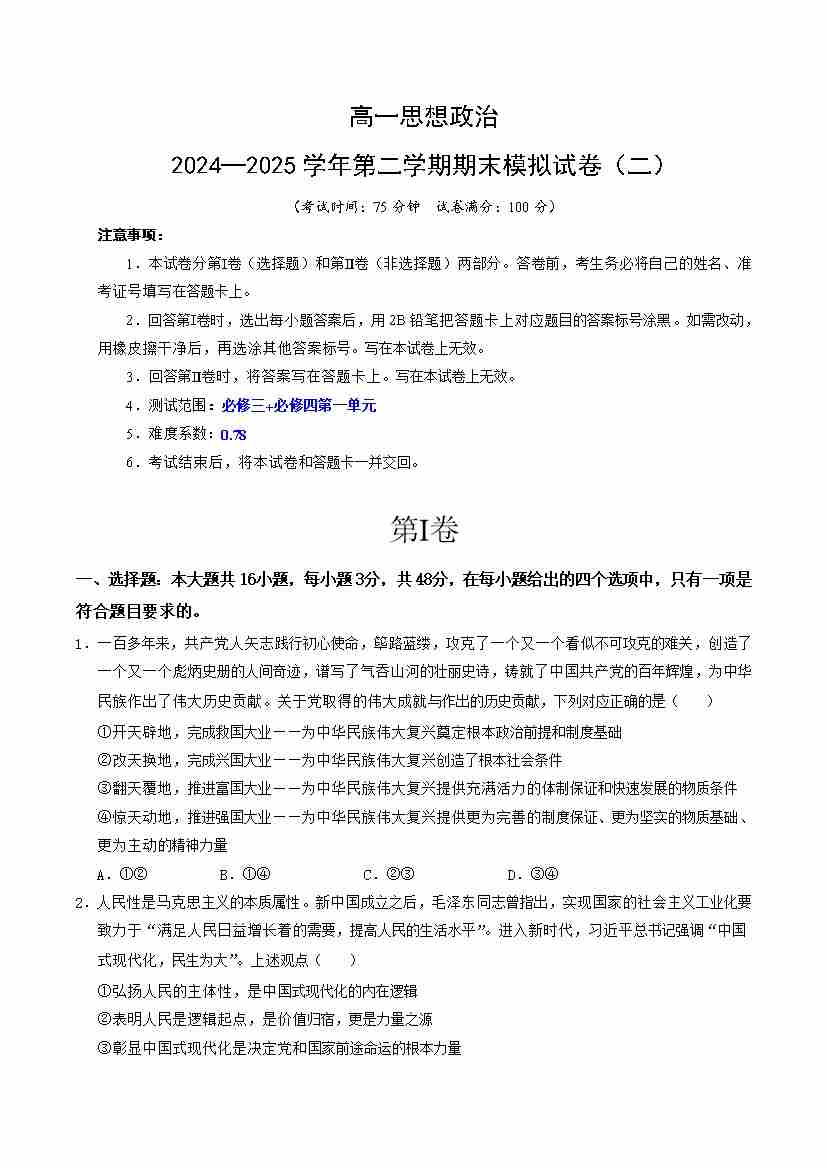 第二单元 认识社会与价值选择(单元测试·基础卷)(考试版A4)