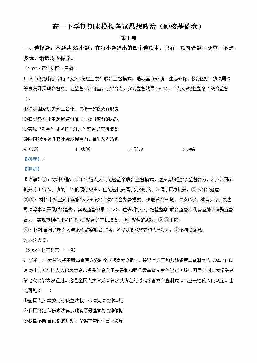 必修三+必修四第一单元 选择题必刷100题(学生版)