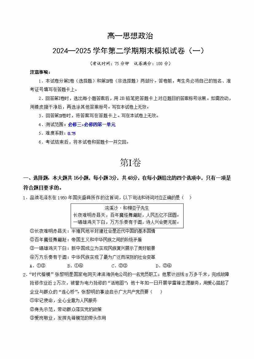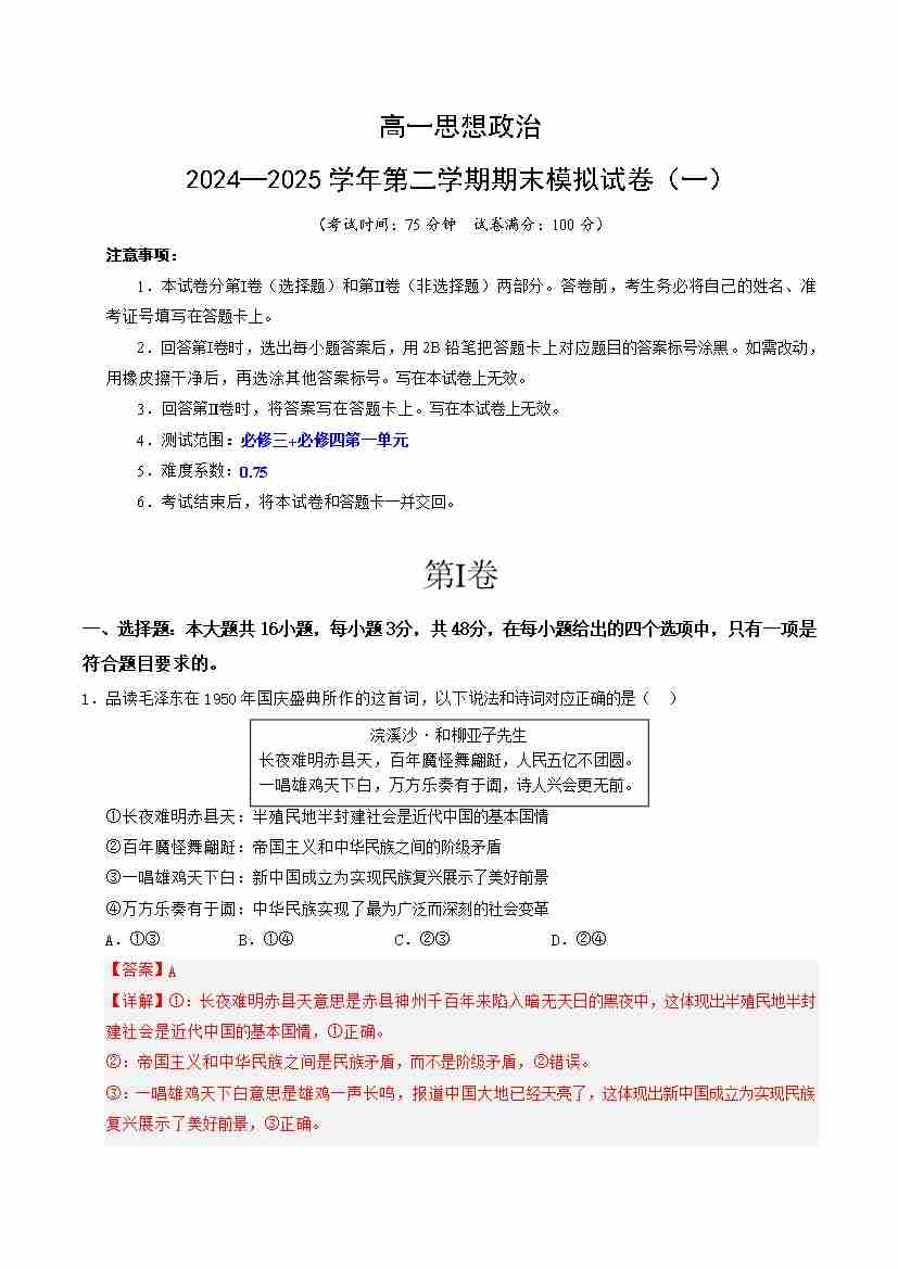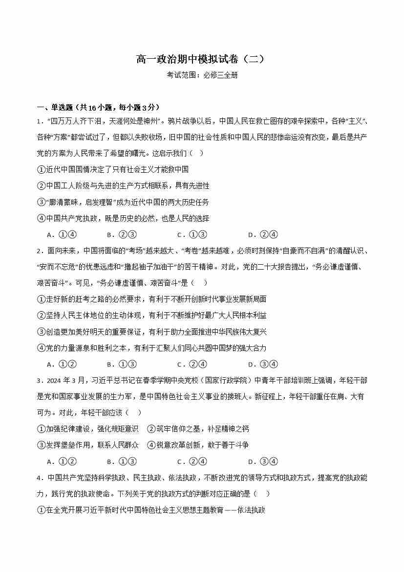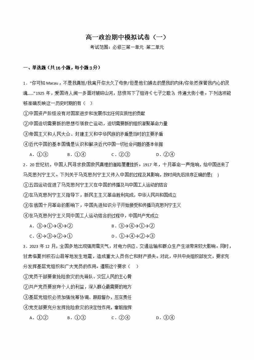第一单元 探索世界与把握规律(单元测试·提升卷)(考试版A4)