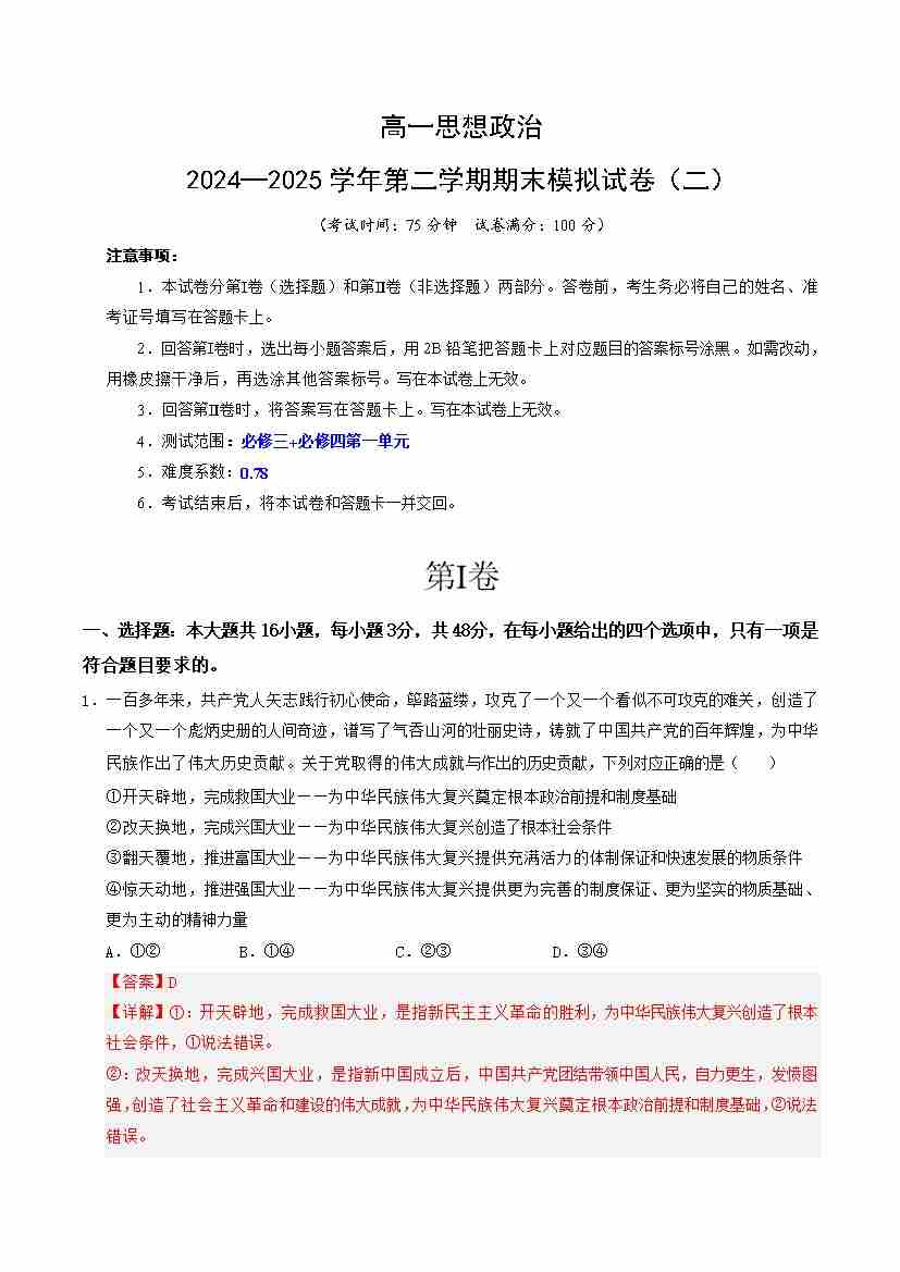 第二单元 认识社会与价值选择(单元测试·提升卷)(教师版)
