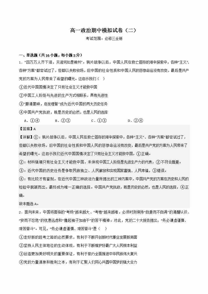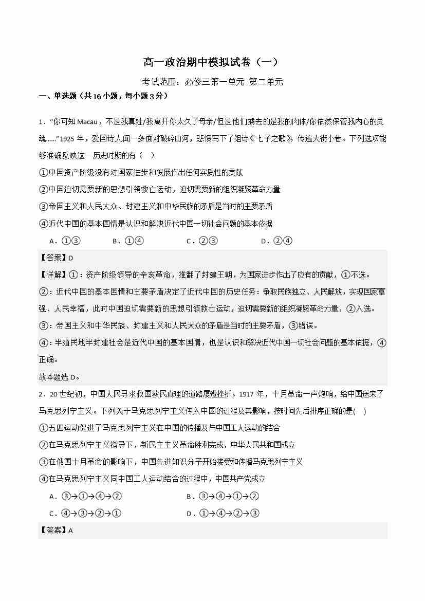 必修三+必修四第一单元 选择题必刷100题(教师版)