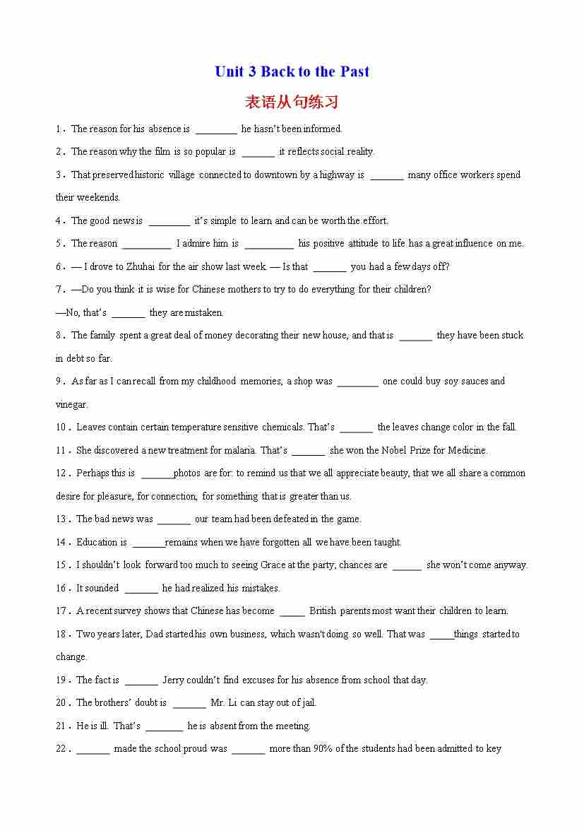 Unit 3 Back to the Past 语法Grammar 表语从句-(译林版2020)