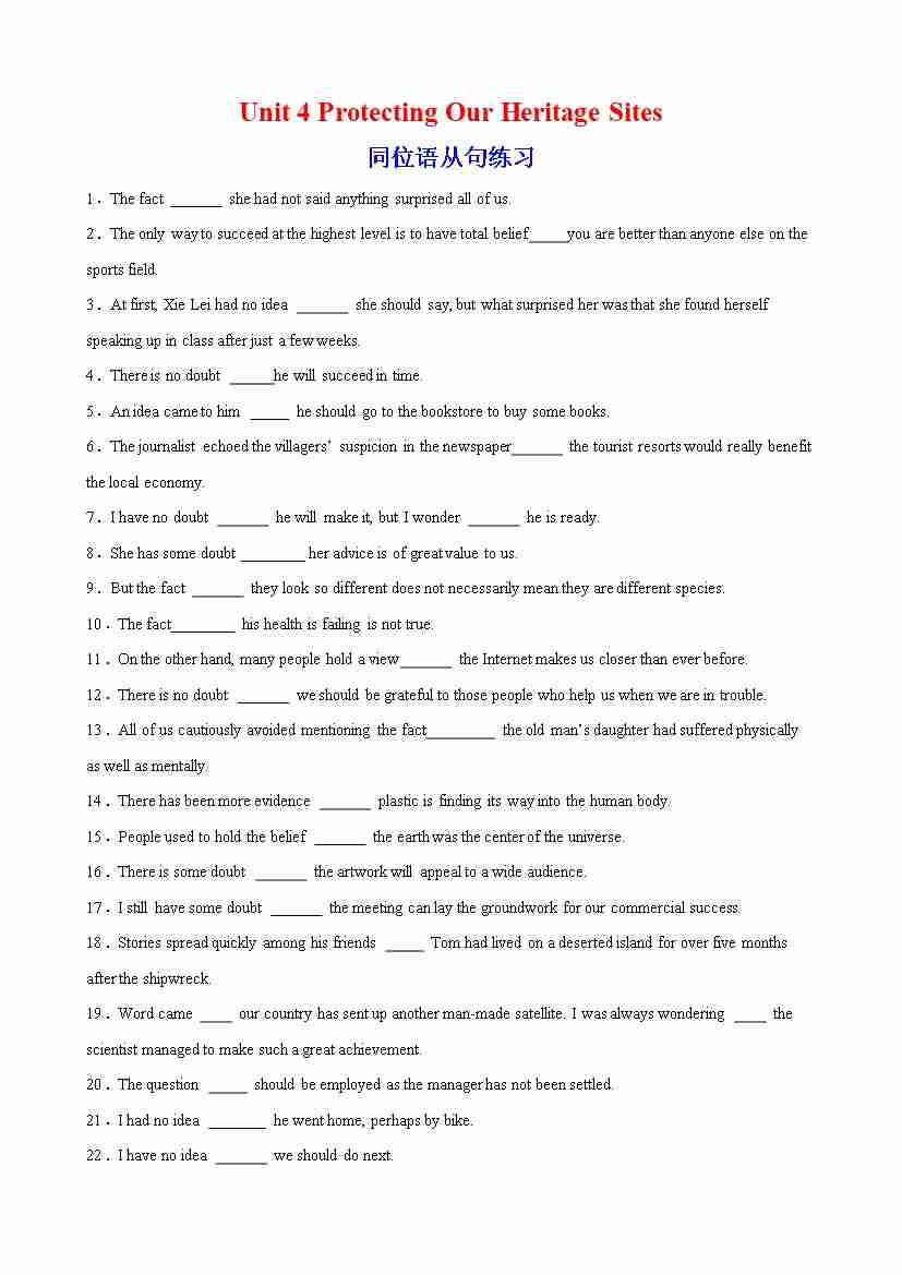 Unit 4 Protecting Our Heritage Sites 语法Grammar 同位语从句-(译林版2020)