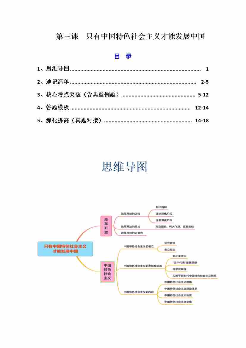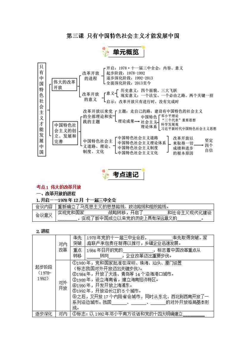 第三课 只有中国特色社会主义才能发展中国(知识清单)